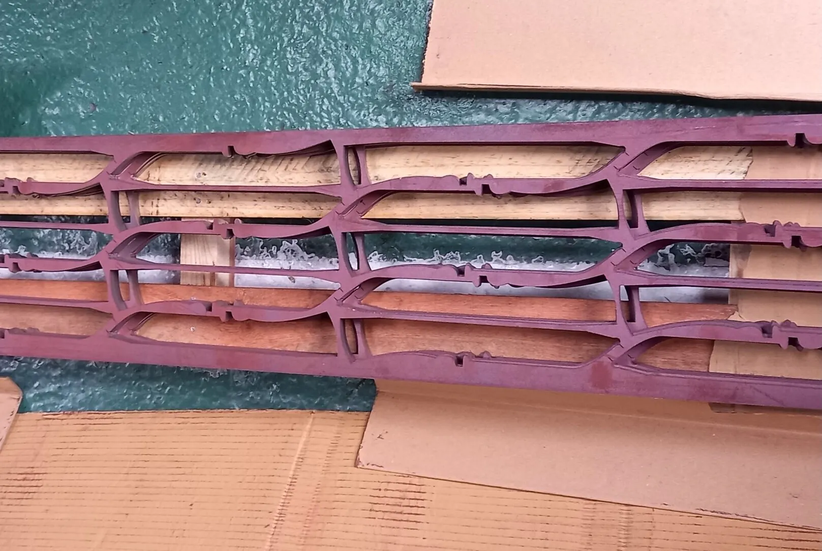 ウォールナット柄材の外周部分以外も先に仕上磨きします。