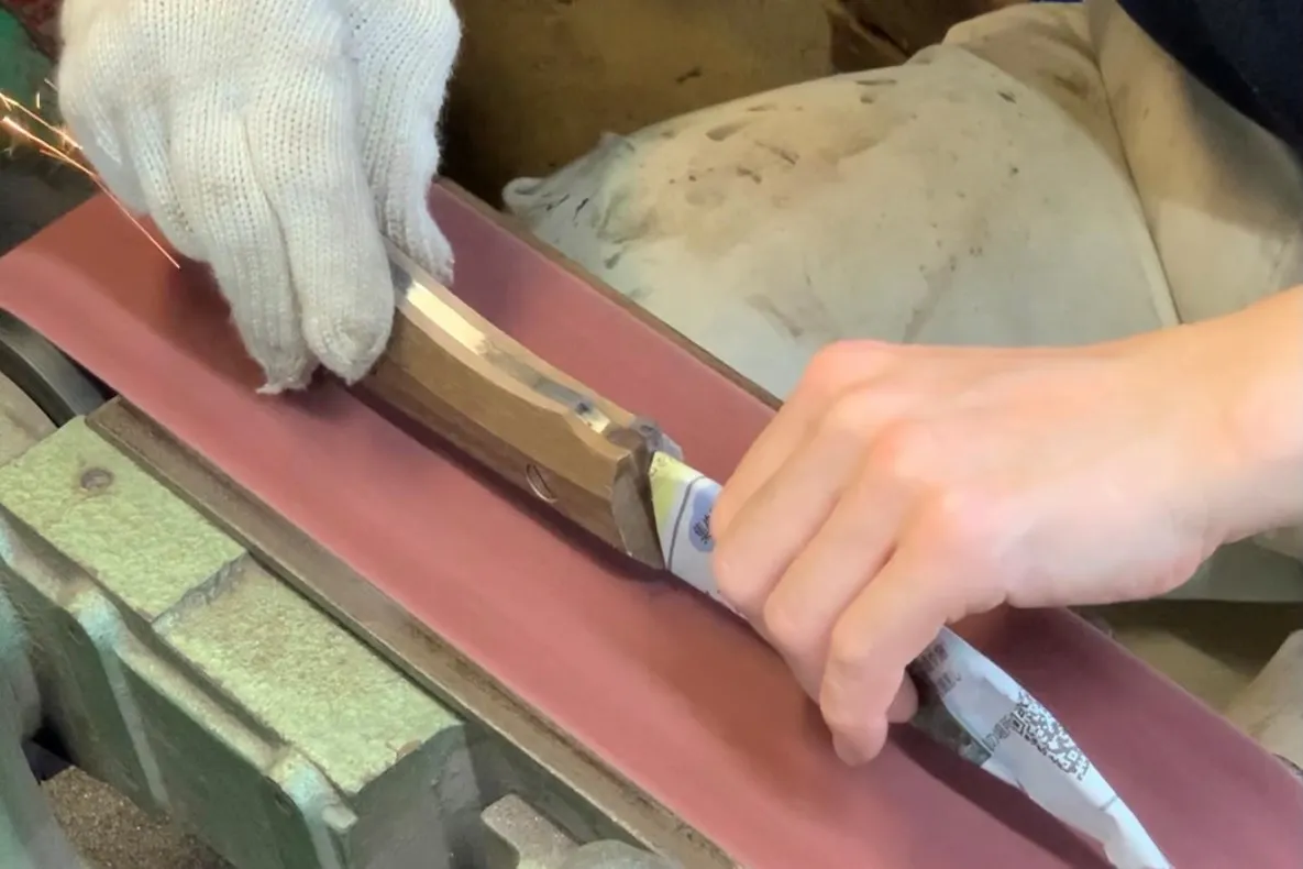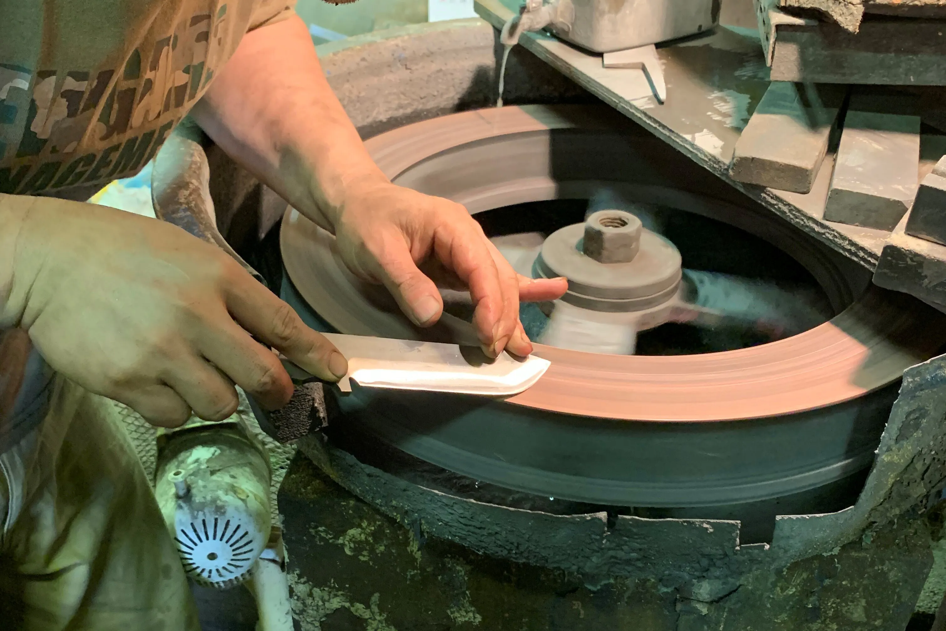 人の手によるいくつもの作業工程を経て、キャンプ専用ナイフ「EIJIN」が完成します。