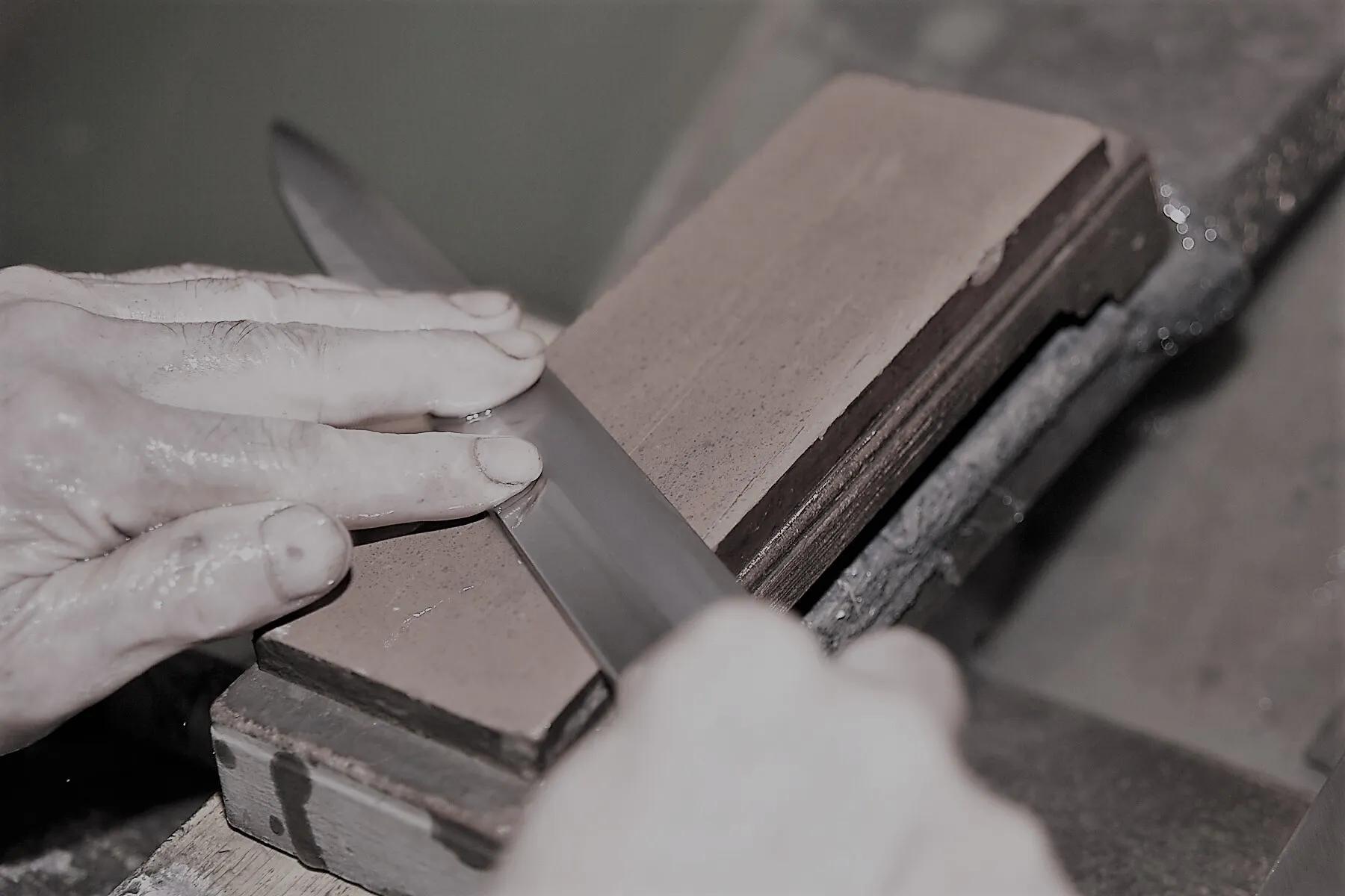 刃先に仕上砥石で仕上刃付けをして切れ味を確認します。