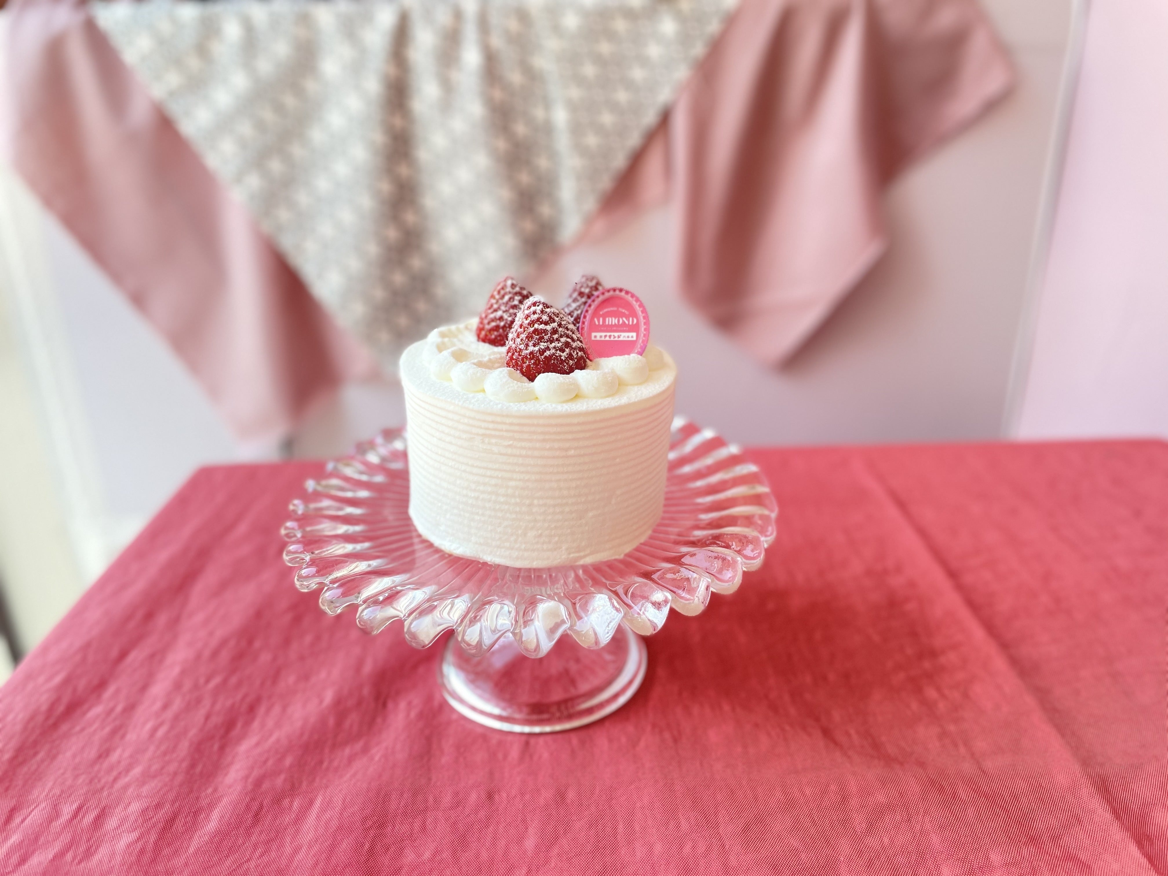 わたしたちアマンドは、コロナ禍により大切な方々と会うことのできない皆様へ、とっても大切な「ハレの日」を囲む、特別な「ホールケーキ」で、六本木の街から応援しています。1~2名様で召し上がれる、手ごろなサイズのオリジナルショートケーキ。すっきりとした口どけを求め、国産ブランドの生クリームに、口どけ食感を大切にしたスポンジ、そしてリングシュ―に使用している自家製カスタードクリームをサンドした、アマンドでしか味わえないオリジナルショートケーキ です。もちろん「ふ~っ」と一息で消せるロウソクと、メッセージプレートをお付けしてご提供いたします♪