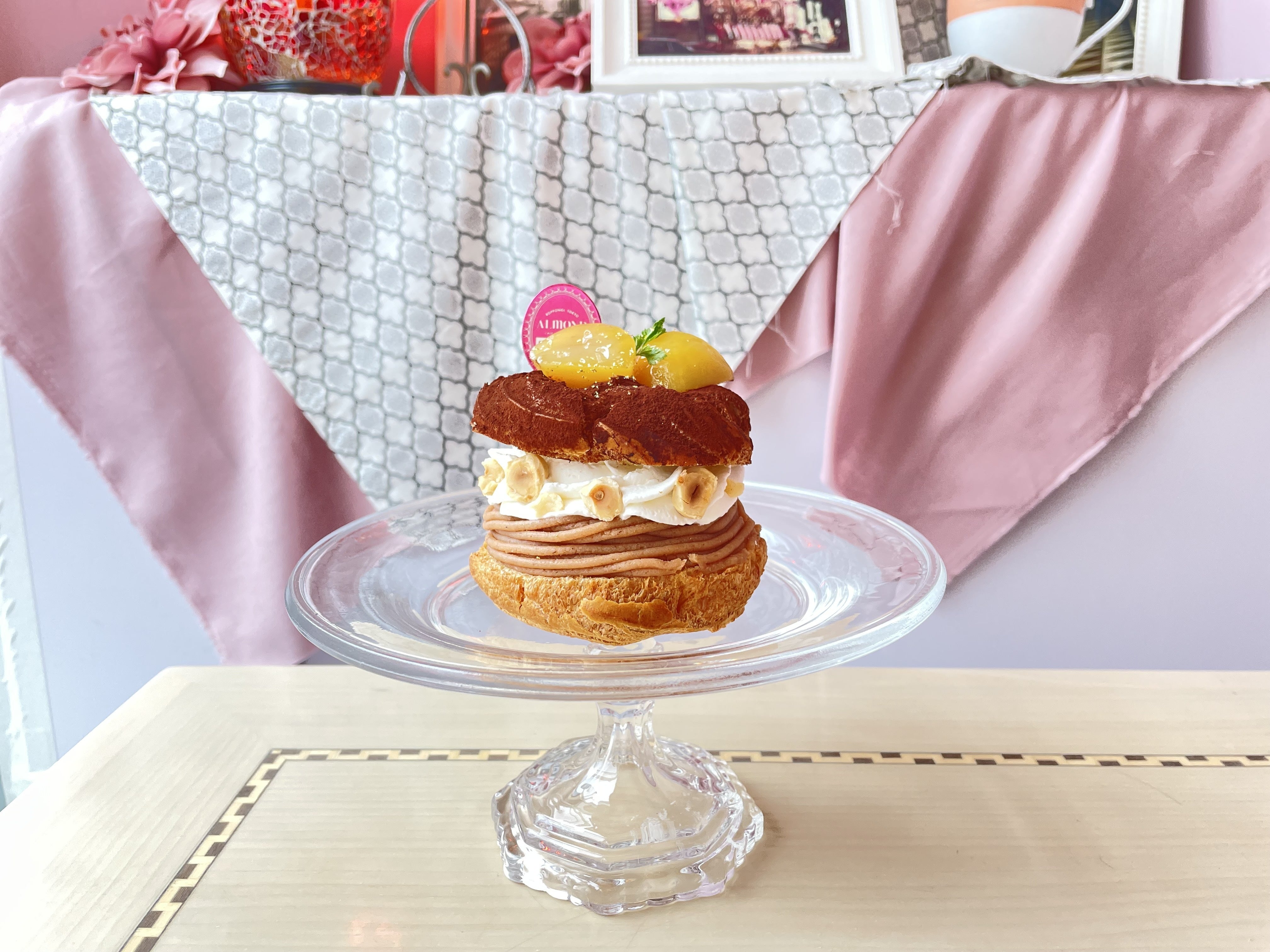 このプロジェクトの為に開発をした六本木リングシューです。洋菓子店や喫茶店で人気の「モンブラン」をイメージしたリングシュー。口あたりの良い、フランス産のマロンペーストを使用し、リングシューと同じこだわりの生クリームと、味のアクセントとして自家製カスタードの「トリプルクリーム」を香ばしいシュー生地にサンドしました。尚、この商品はご支援者様限定の先行発売(2021年は通常販売致しません)品です♪♪