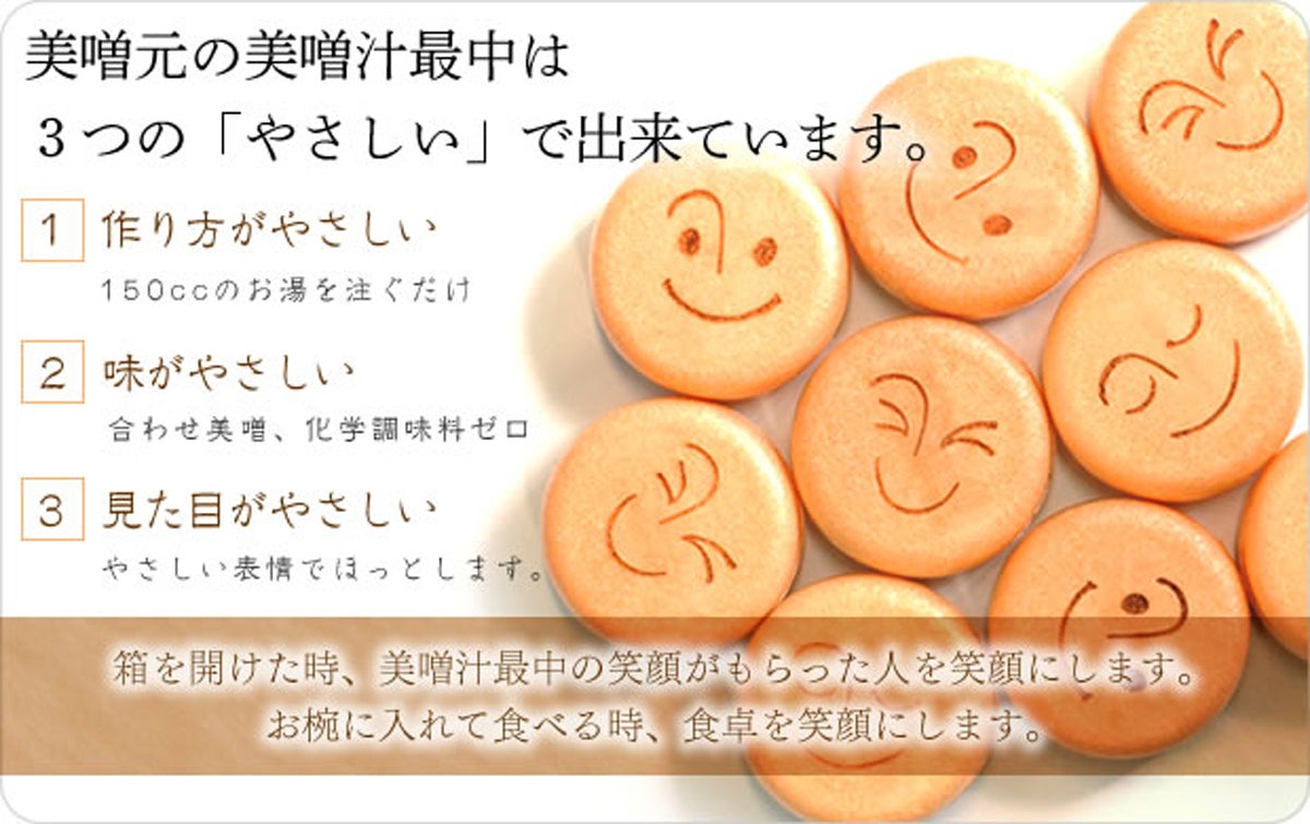 このような状況下でも笑顔になれる瞬間を増やしたい。美噌元にはちょうどぴったりの商品があります、それがかわいい笑顔が特徴の「美噌汁最中」です。