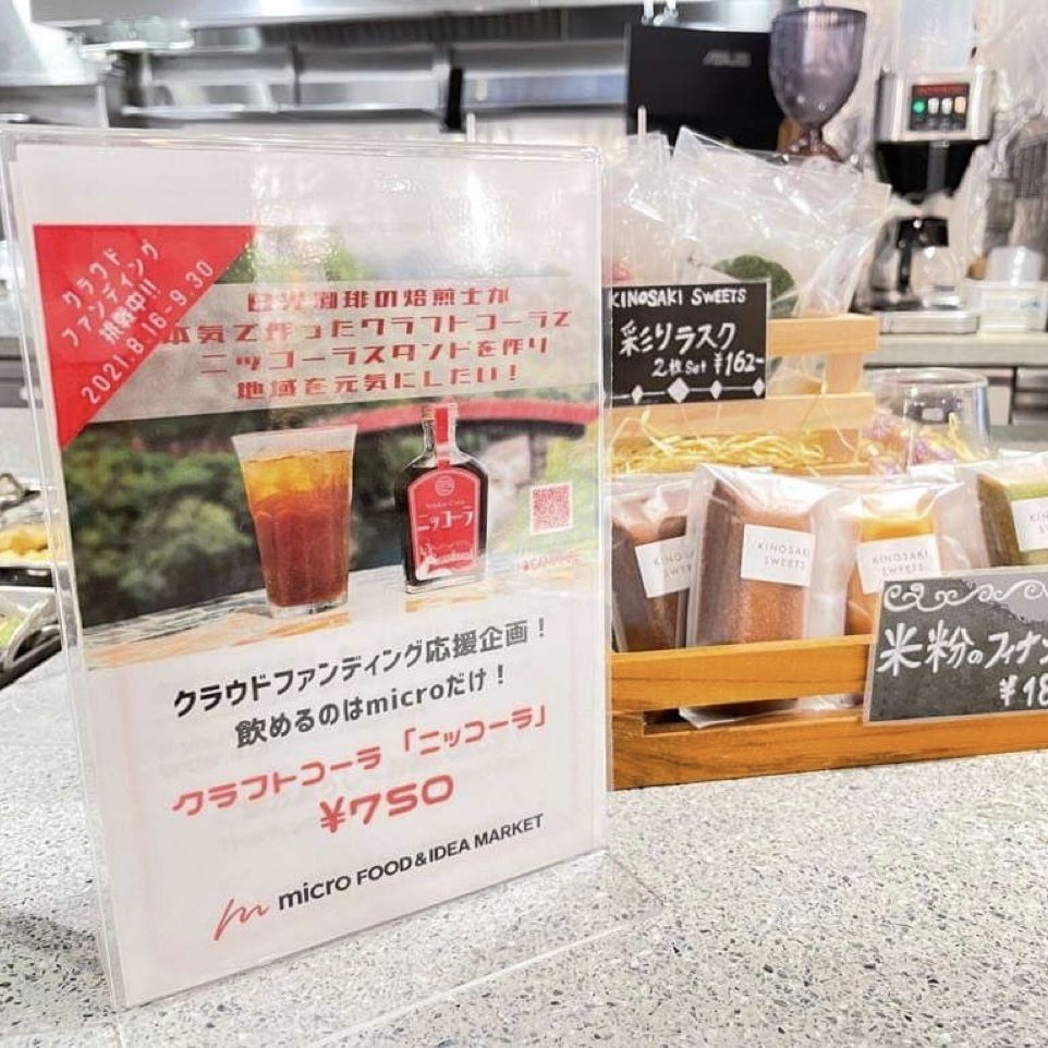 8/16ー9/30のプロジェクト期間中倉ファン応援企画として「ニッコーラ」リターン品の展示と特別メニューとしてニッコーラが提供されます。
