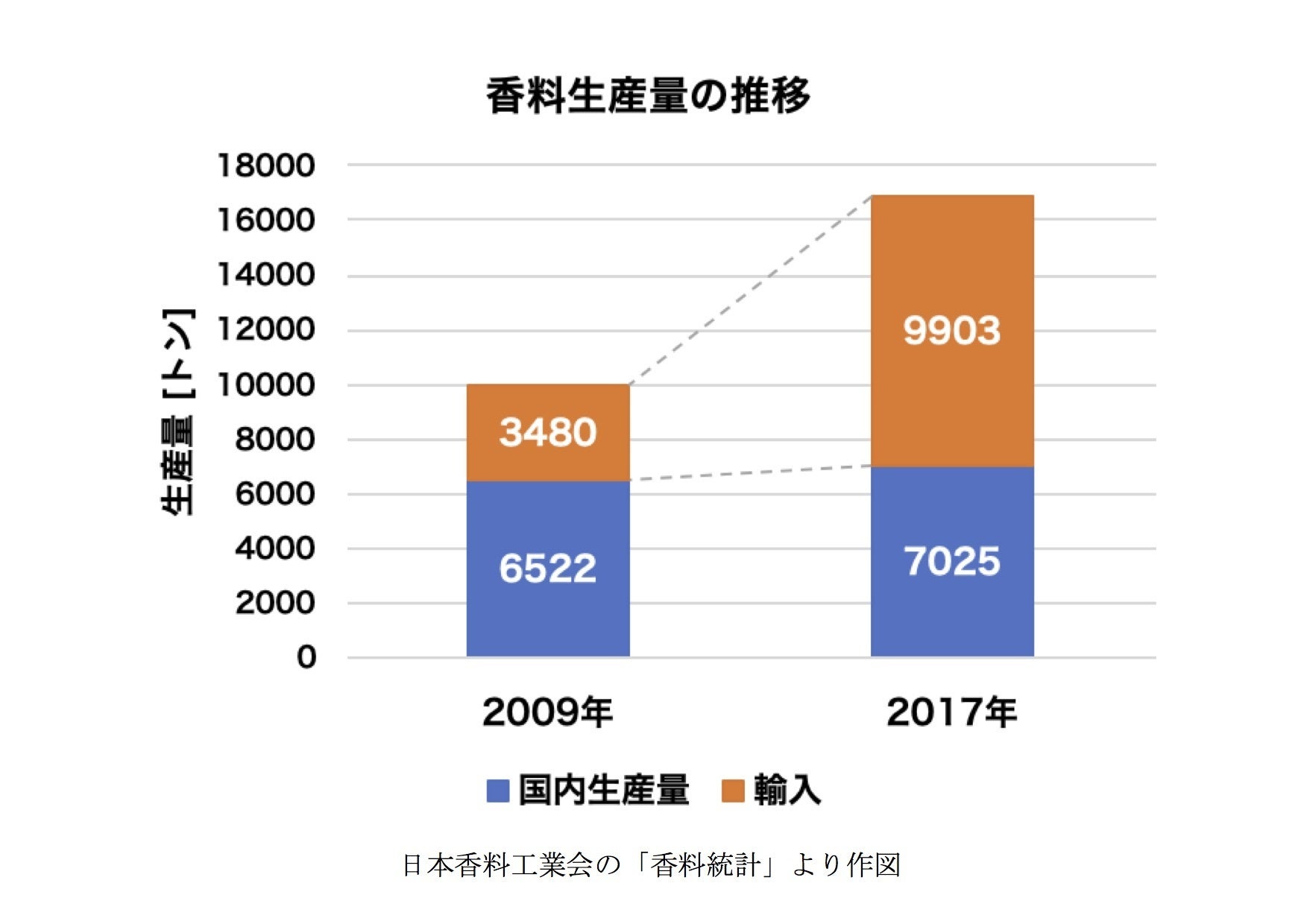 2009年から2017年の8年間で、香料生産量は約1.7倍になっています。