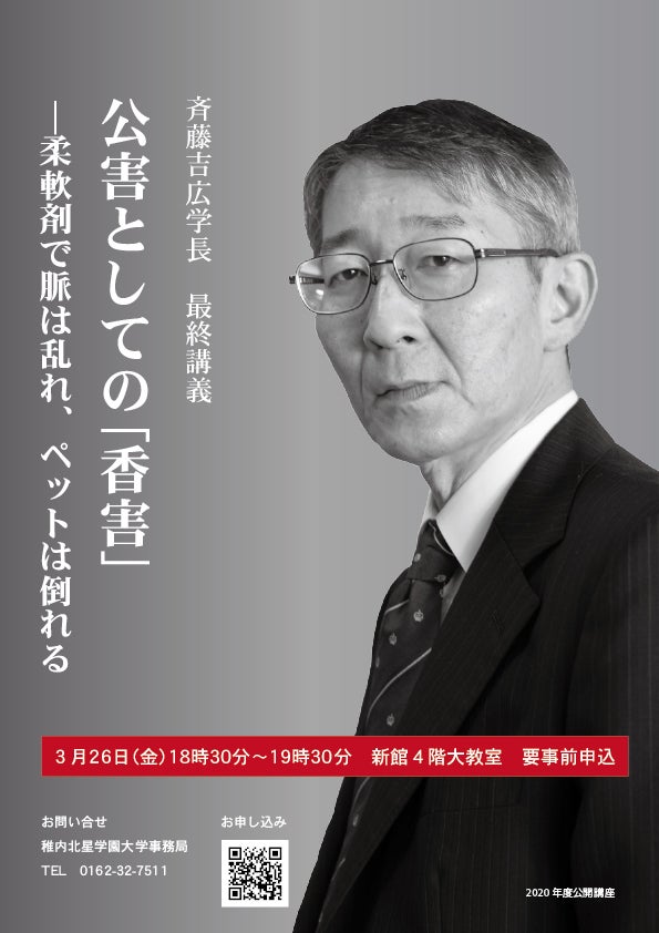 2021年3月斉藤は「稚内北星学園大学学長退任の最終講義」をしました。テーマは「公害としての『香害』」です。