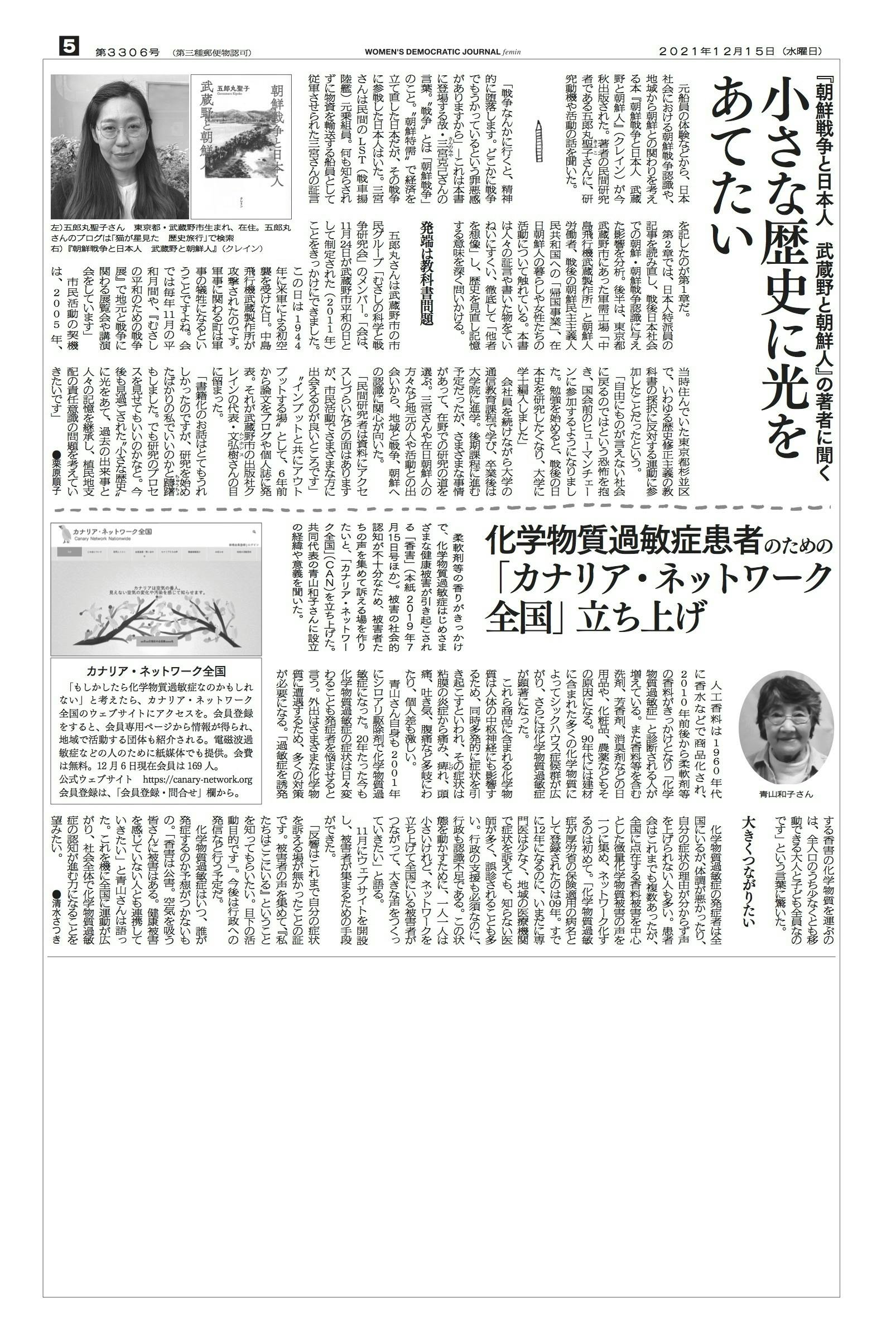 「ふぇみん」第3306号(2021年12月15日)に、CAN共同代表の青山和子が取材にお答えした記事が掲載されました。