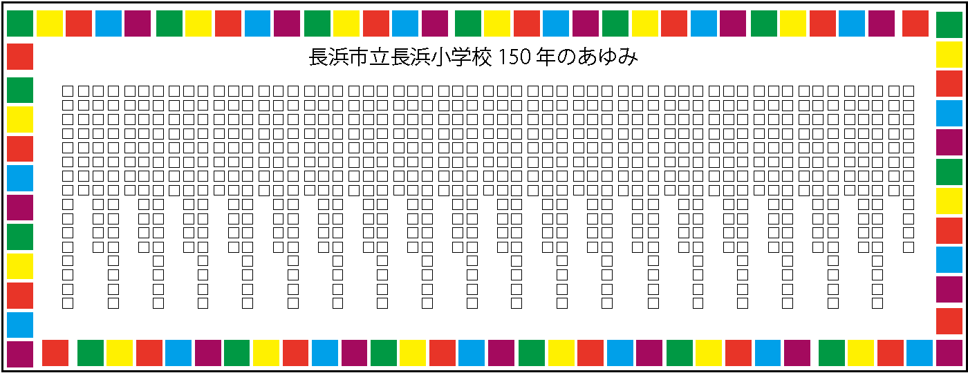 更に、長浜小学校の子供たちがその歴史を感じられるもの、地域性があり後世に残るものを作ることで、この節目を迎えたいと考えました。その中で考えたのが、150年の長浜小学校の歴史年表の制作と、その