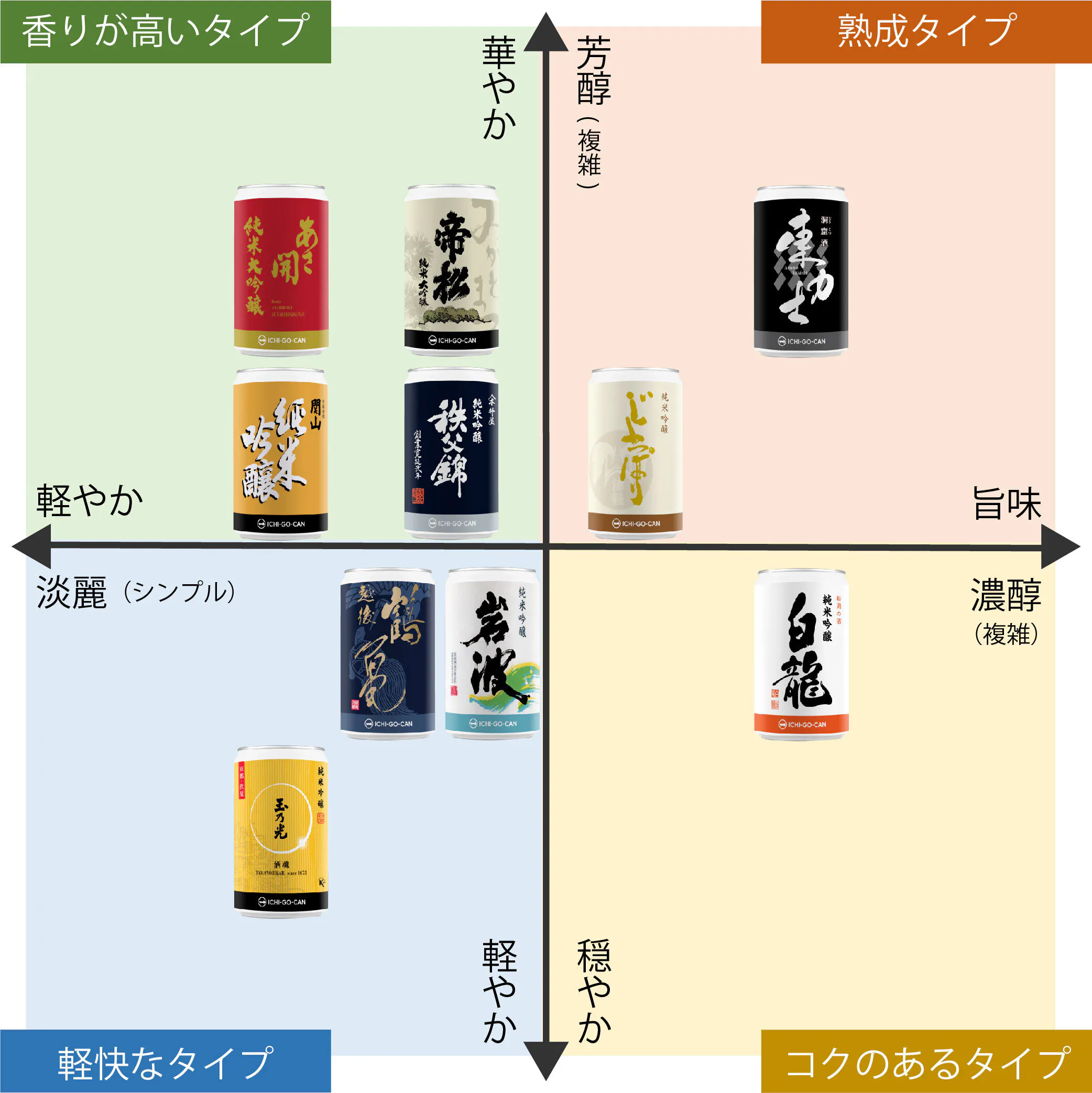 ICHI-GO-CAN®(一合缶®)は、適量なため、普段日本酒を飲まない人も手軽に楽しめ、お気に入り日本酒と出会えます。一合缶® には、蔵元を代表するお酒が入っているため、一合缶を飲むと、その酒蔵の味が分かる。 一合缶® は、そんな180mLサイズの缶入り日本酒ブランドです。