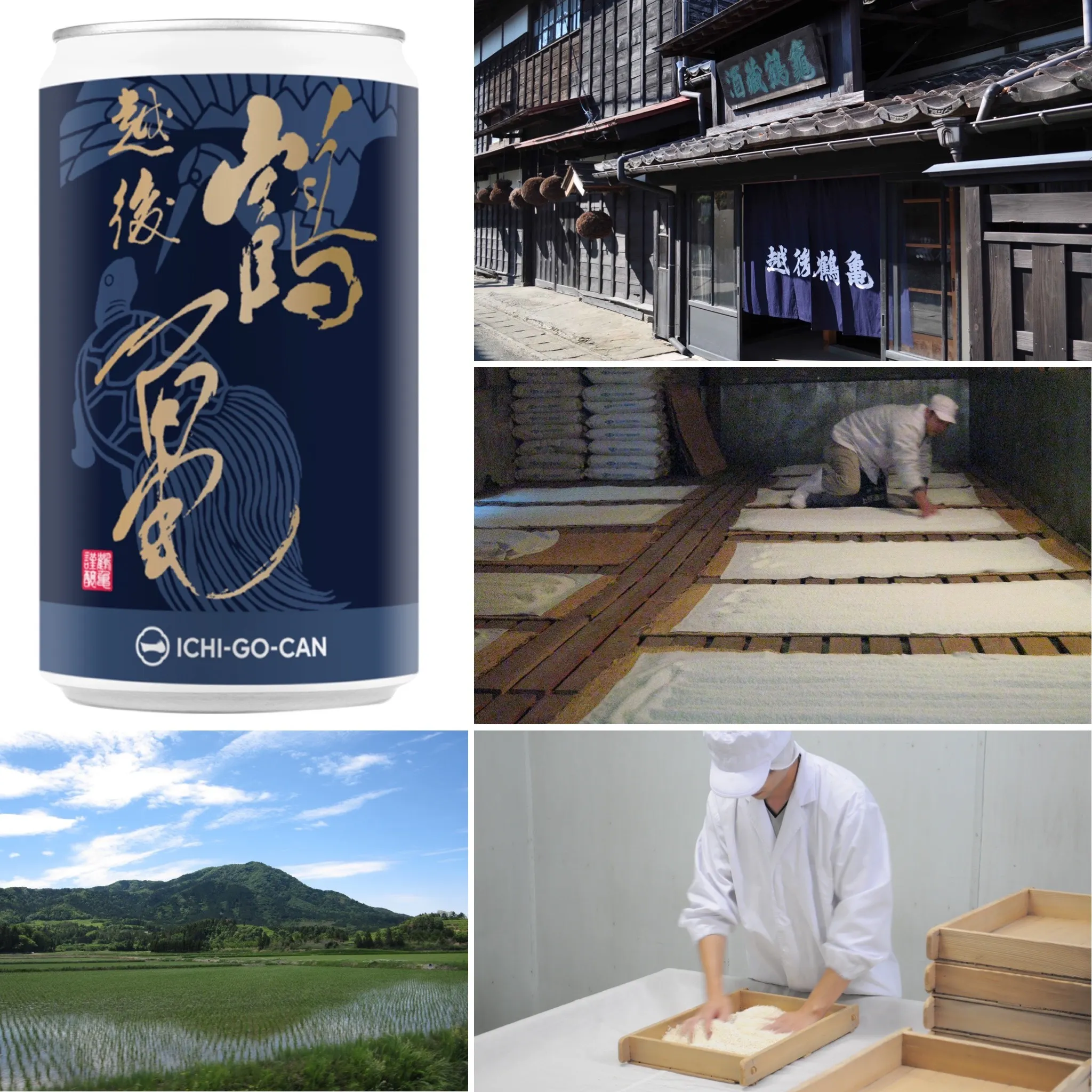 ● 越後鶴亀 純米吟醸 一合缶:純米吟醸 ・山田錦・こしいぶき、Alc 15度、精米歩合 60%