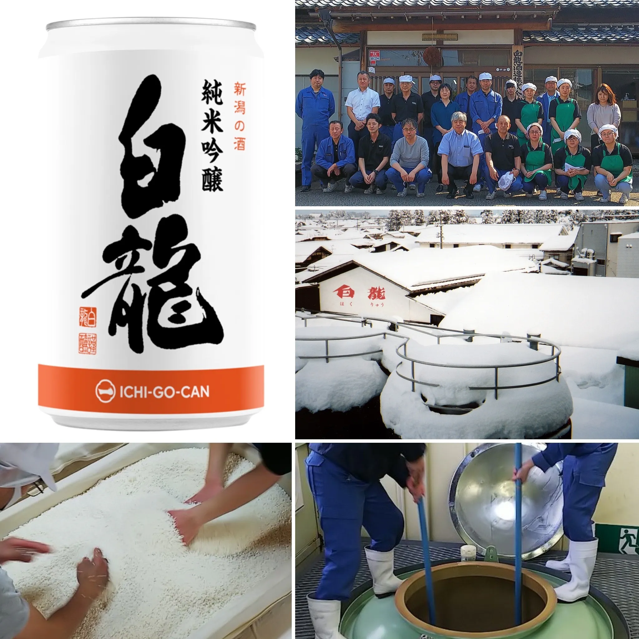 ● 純米吟醸 白龍 一合缶:純米吟醸 ・五百万石、新潟県産米・Alc 15度・精米歩合 60%
