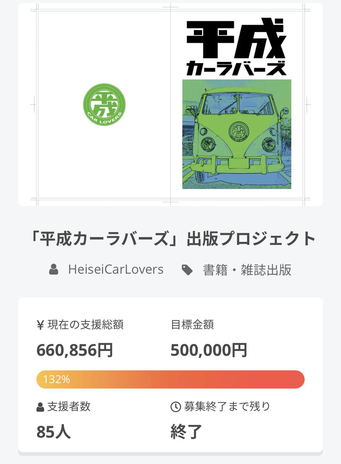 書籍第一弾『平成カーラバーズ』出版のためCAMPFIREでクラウドファンディングを実施。