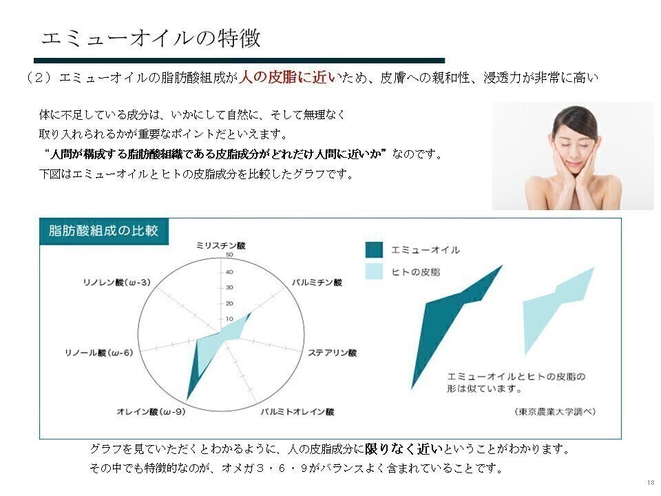 農業から商品化までを一つの流れとして、医食同源のエミューの価値向上、商品化を行いエミューのすばらしさを認識していただければと思い立ち上げました。 エミューオイルはアトピーなどで肌悩みを持つ方のあとケアとして、お肉や卵は食物アレルギーの方へなど利用方法が豊富で健やかな生活を送るための素材として期待しています。