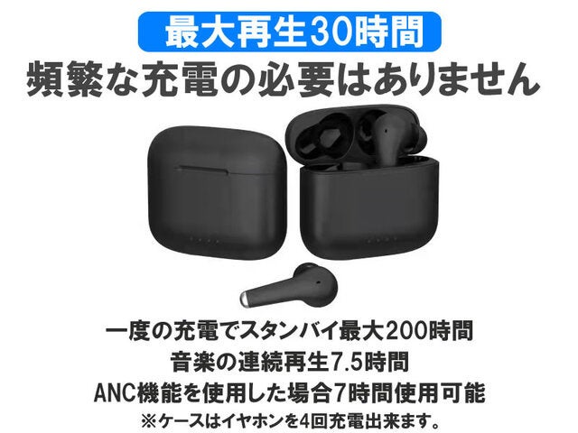 ・最大30時間再生(ケース満充電でイヤホンを4回充電出来ます)