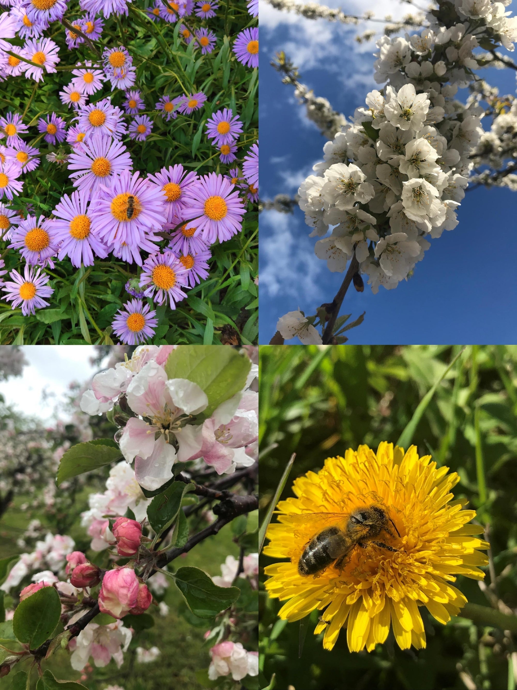 クリーミー「生」はちみつの蜜源は、スプリングフラワー(春の花)です。冬が終わり春になると一斉に咲き始める花からミツバチが新鮮な蜜を集めて飛び回ります。