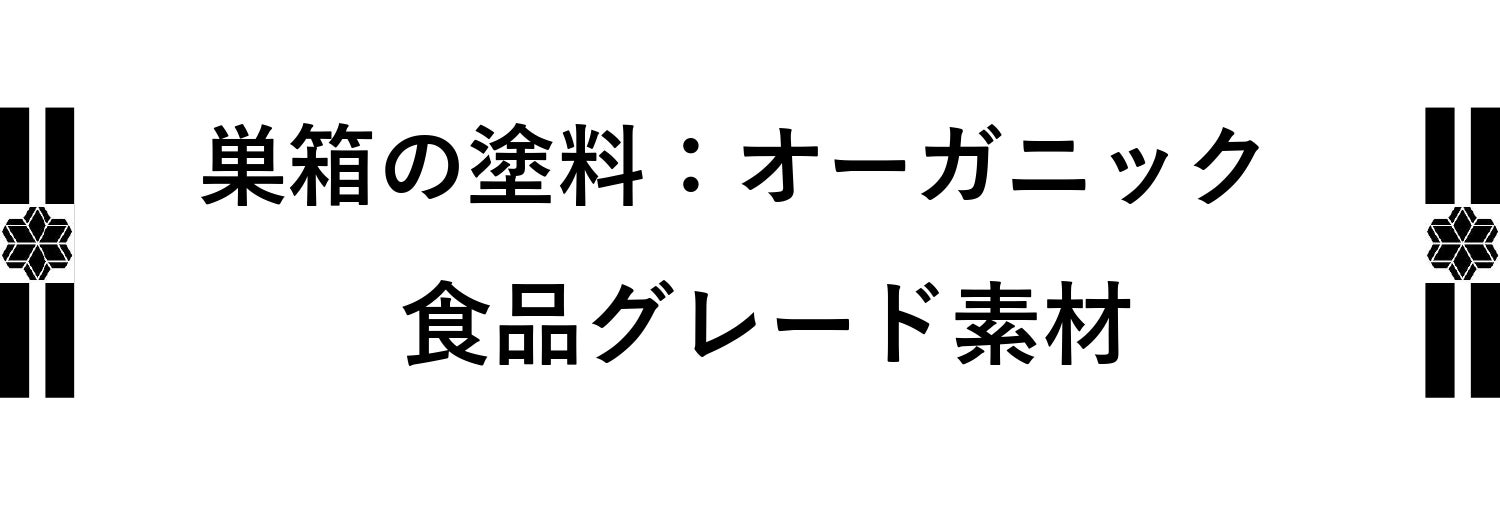 さて、当養蜂場でこららの巣箱に使用されているペンキですが、すべてオーガニック塗料であり、食品グレード成分の安全なものとなっています。そのため、たとえ口に入れたとしても健康に害を及ぼすことはありません。