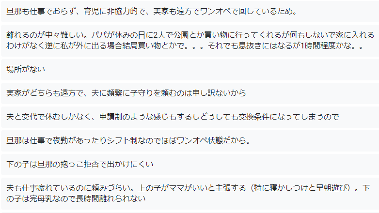 子育てに疲れてるけど行くことができない、