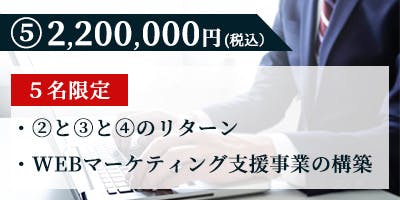 (WEBマーケティング支援事業を新規事業で始めたい方向けのリターンです。営業マン、運用者の教育から仕組み構築をフルサポートします。資料作成/勉強会/営業同行/広告運用講習/コンサルティングなどを行い、半年間かけて事業構築いたします。)