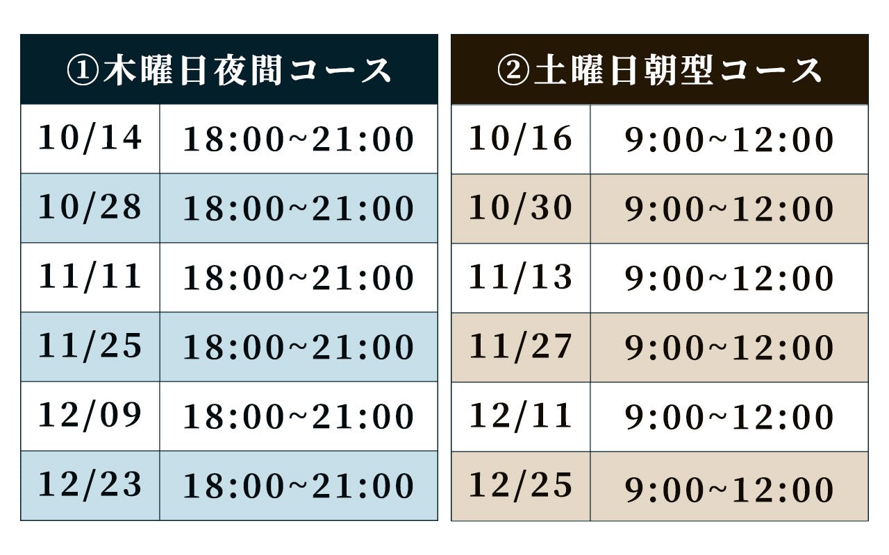 受講日:木曜日コースか土曜日コースか選んでいただきます。