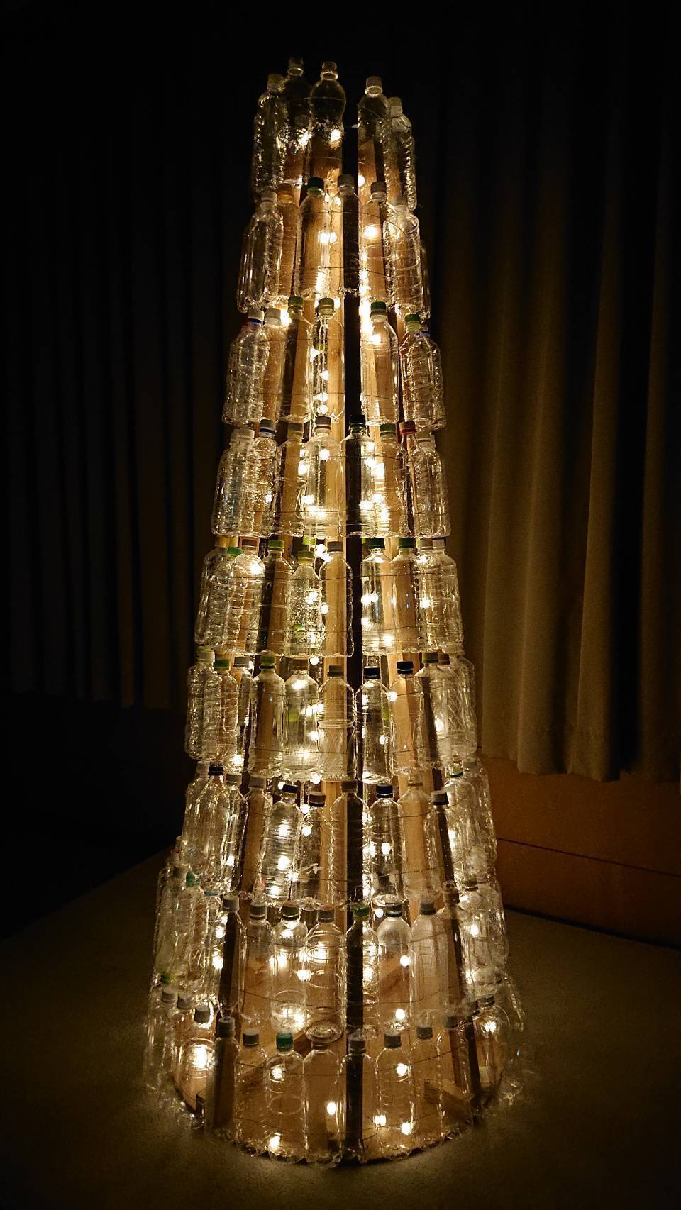 学校ごとにペットボトルでイルミネーションタワーを作成し、皆さんに見て頂けるイベントにて飾ります。