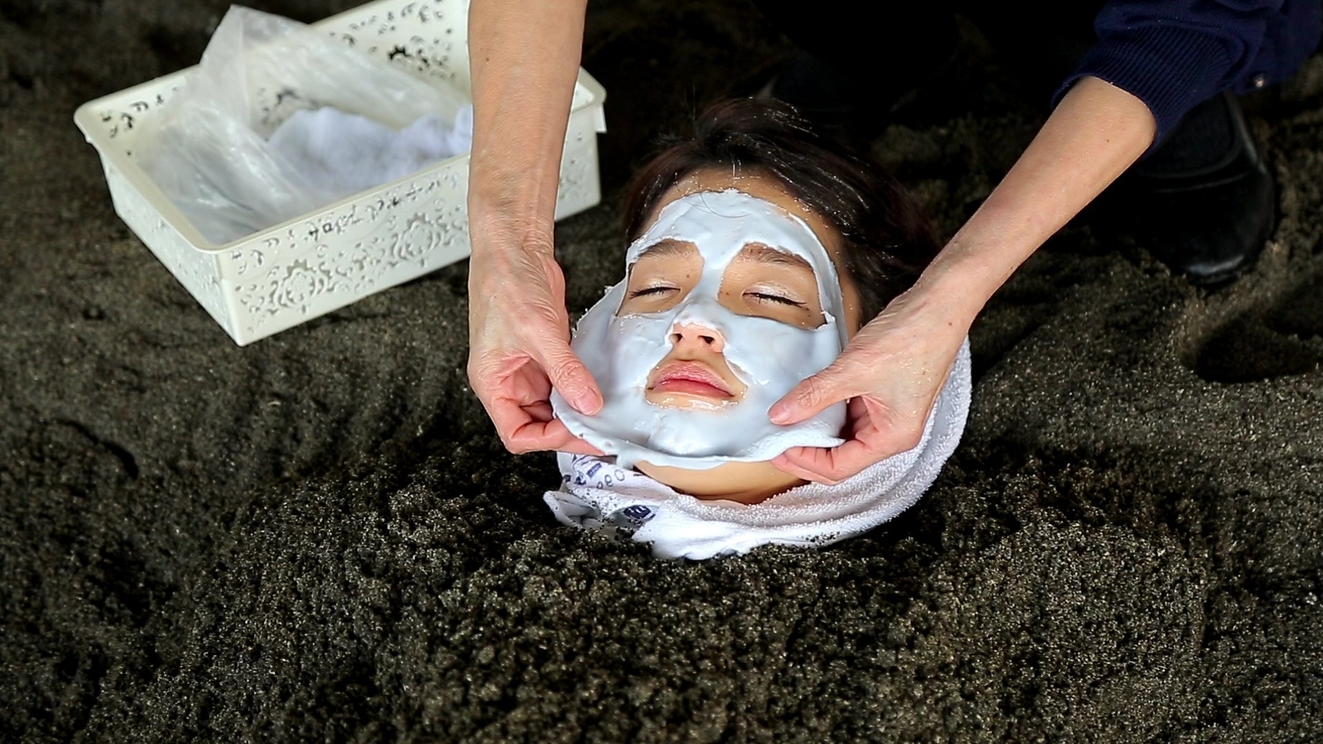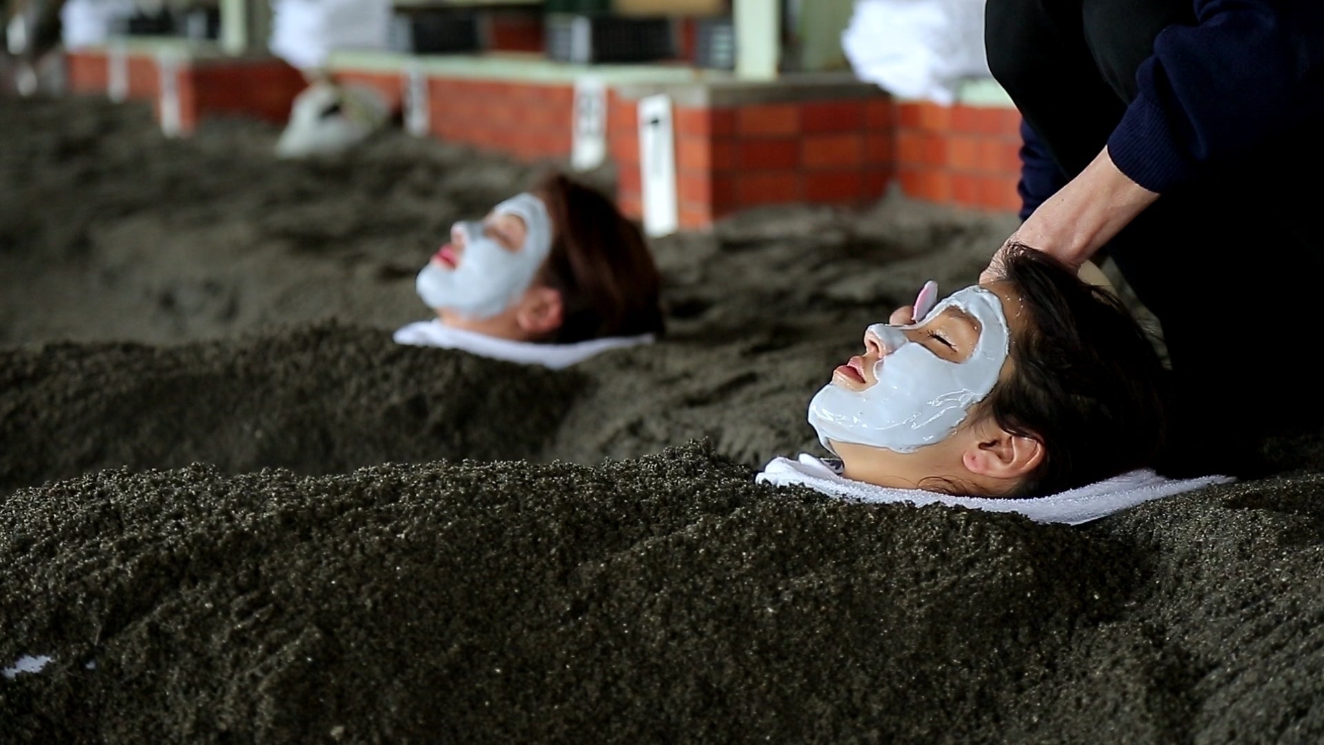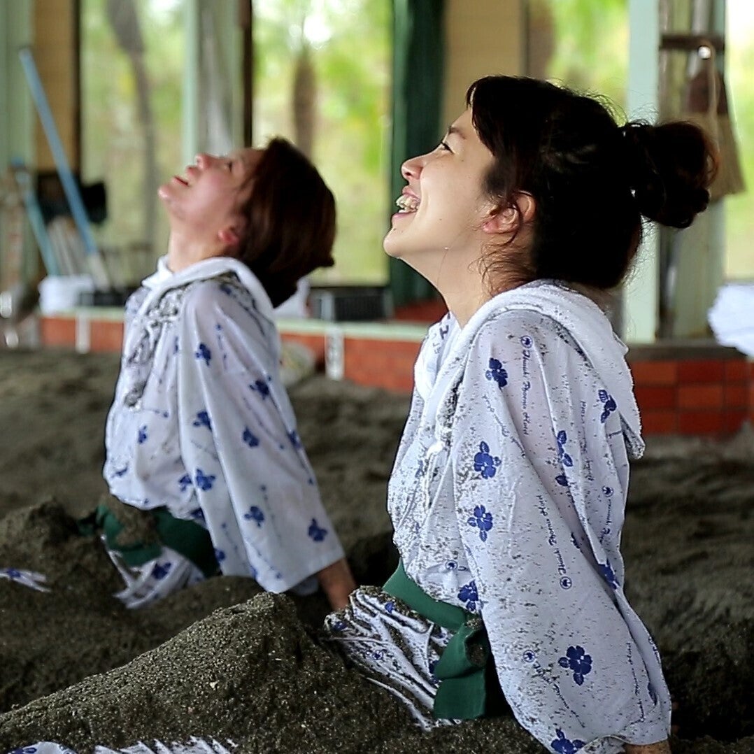 名物「砂蒸し温泉」は50度前後に熱された砂の中で専用浴衣を着て約10分~15分蒸される珍しい温泉です。