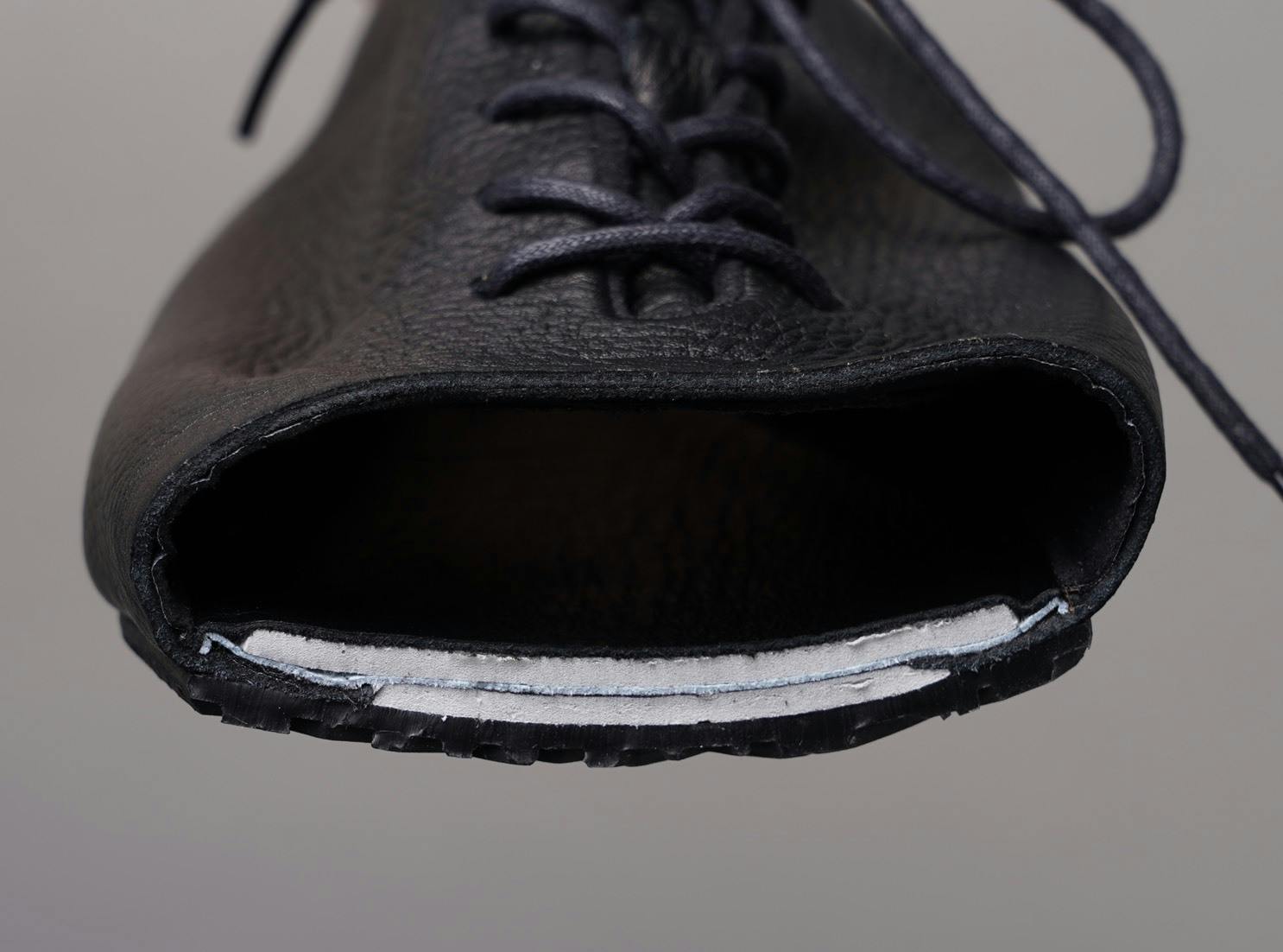 靴には通常「中底」と呼ばれる板が入っていますが、この製法はその「中底」を使いません。