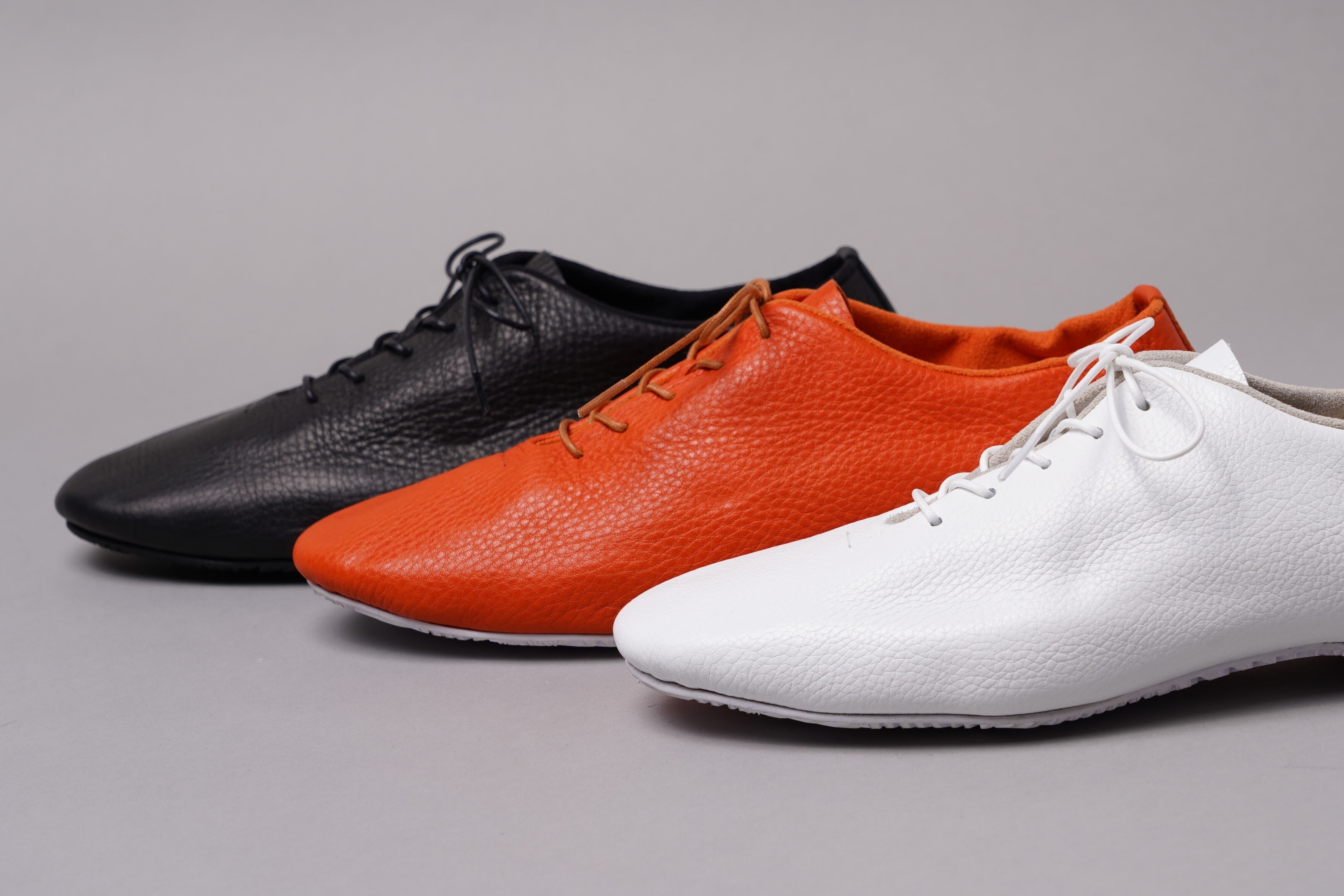 1. 通常靴にはかかととつま先に硬い芯材が入っていますが、この靴はそれらを入れない為、クタっと柔らかく、様々な足の形になじみ包み込まれる優しい履き心地を実現しました。