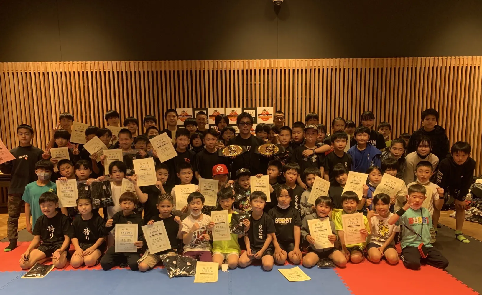 5月4日に行われた、第一回目のジュニア修斗の大会では、全国から約100名のこどもたちが集まり、熱い戦いが行われました。