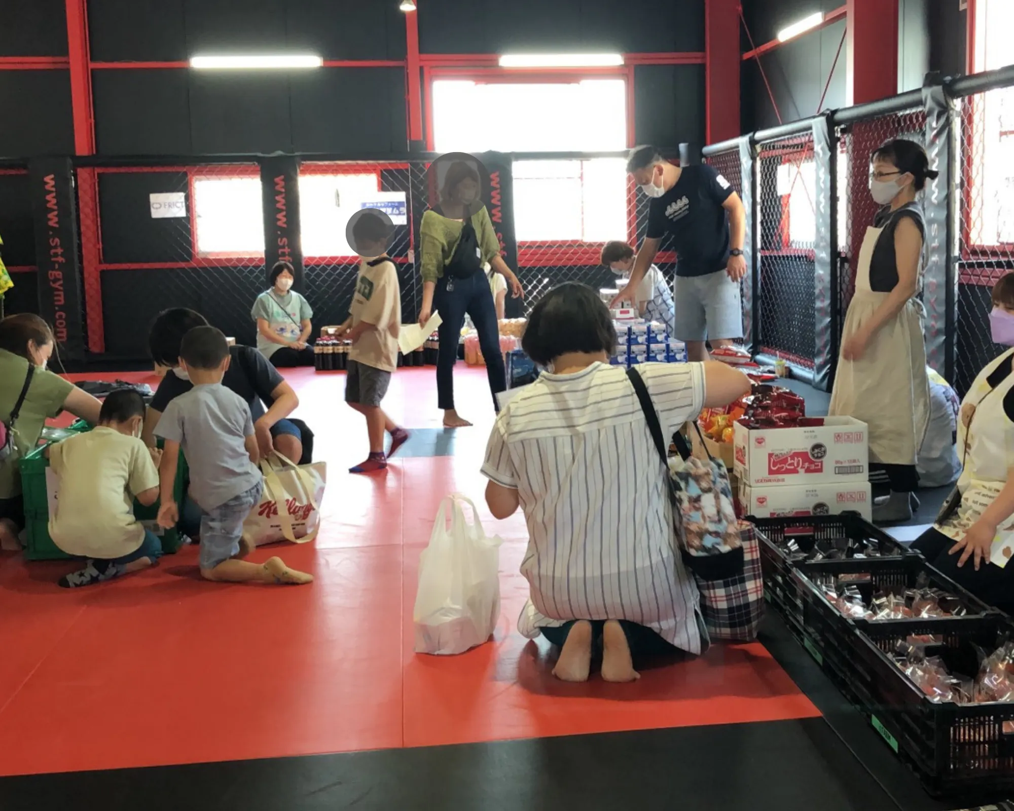 ・9月ごろ(パントリー当日)、STF川越ジムにて、ご協力いただいた企業様ごとのブースを設置し、ご提供いただいた物資を設置いたします。