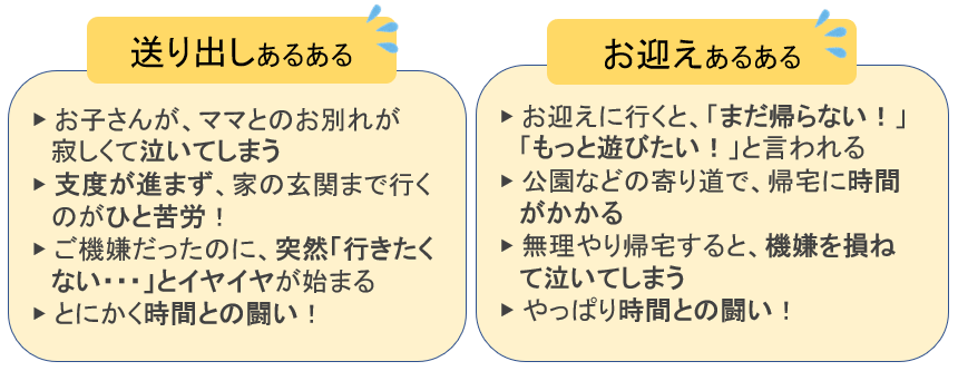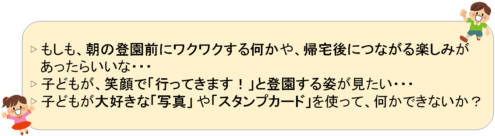 そんなツールがあったら、子どもだけが笑顔になるだけではなく、毎日の送迎もスムーズになるのではないか?と考えています。