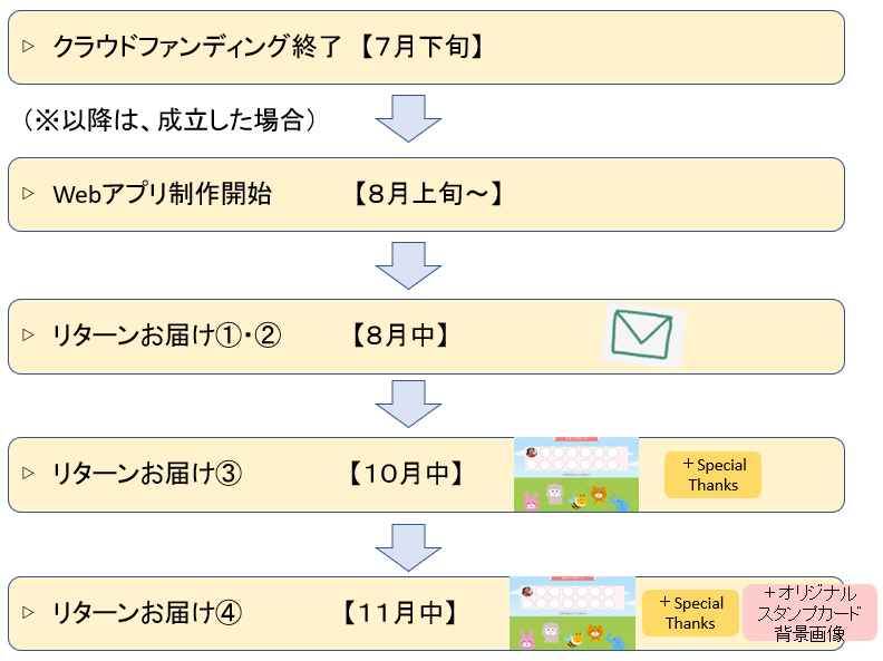 クラウドファンディング終了後のスケジュールは、以下のとおりです。