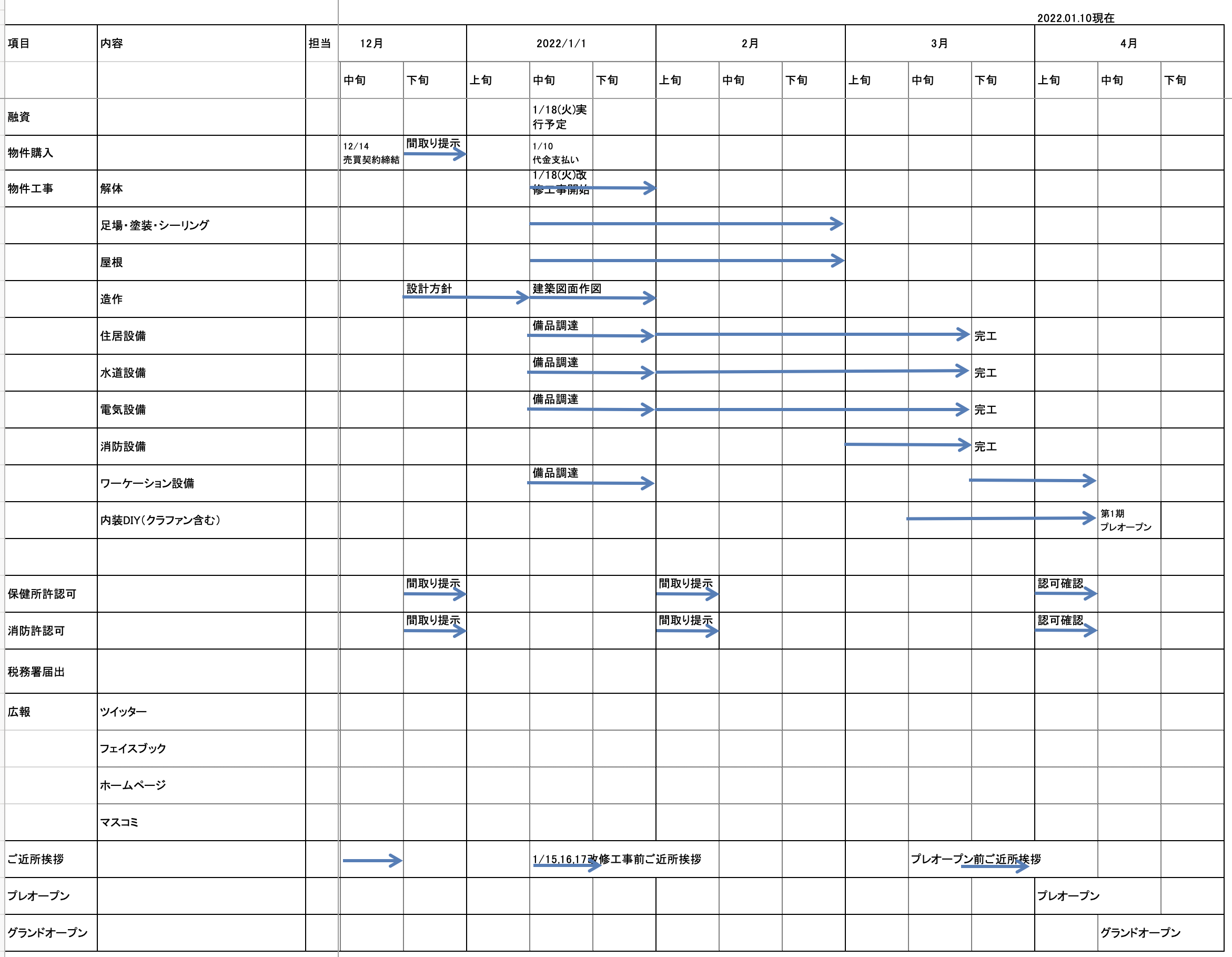 2021年夏頃から、お金も財産もない私が、どうやったらゲストハウスをつくることができるのか、大手IT企業の部長、建築家、広報担当者、、クリエイティブディレクター、不動産事業者、地域プロデューサーの方々などがたくさんの知恵を絞ってくれました。