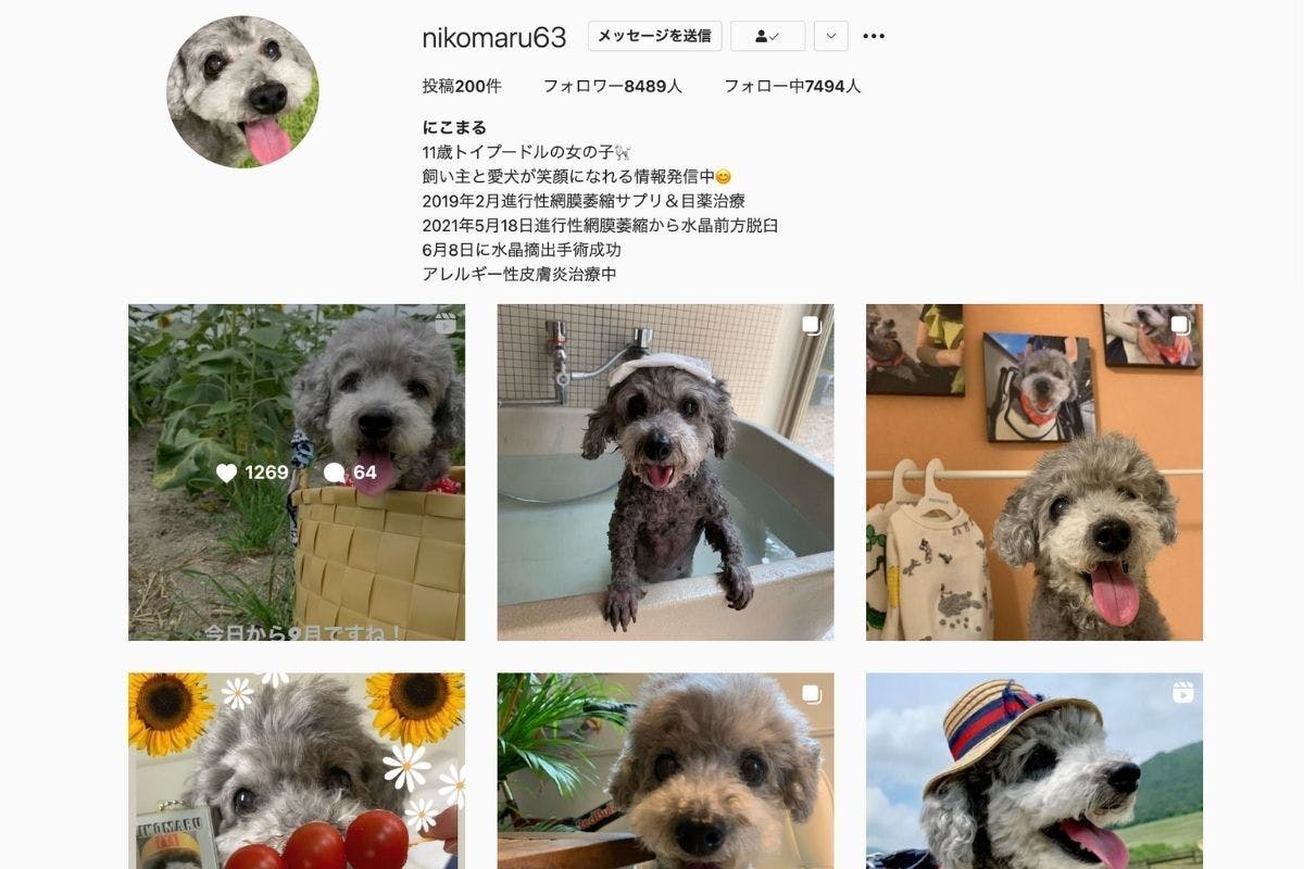 にこまるは、進行性網膜萎縮という目の病気で、水晶の摘出手術を行ったばかり。
