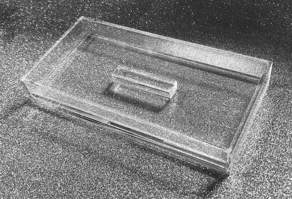 本体、蓋、共に厚みのあるアクリルを使用し、重厚感、高級感を演出しております。