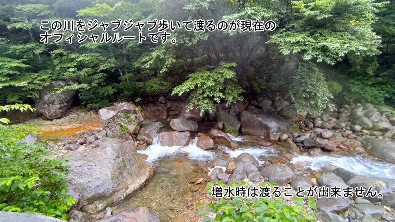 川の中をジャブジャブ歩いていくのが現在唯一のアクセス方法ですが、それなりの準備がいりますし、誰でも気軽にできることではありません。また、増水時は無理です。