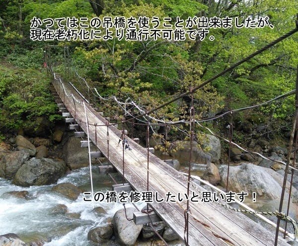 そのため、行政各所には10年以上前から吊り橋の修理や日常的なメンテナンス、別ルートの開発を繰り返し陳情してきましたが、残念ながらこれまで特に成果は出せていません。