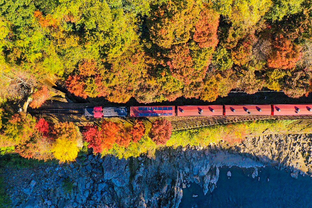 トロッコの車窓から見える保津川渓谷の大自然は、季節ごとに異なる美しさで訪れた人々を魅了しています。