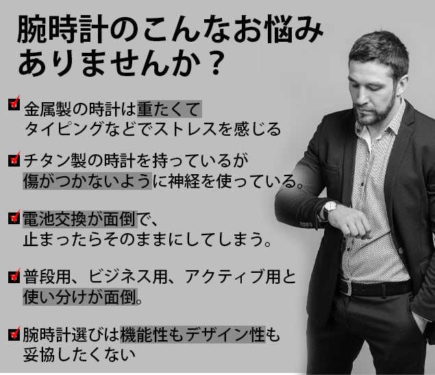 さらに本体素材にチタンを採用することで軽い付け心地を実現でき、1日中着けていても快適です。