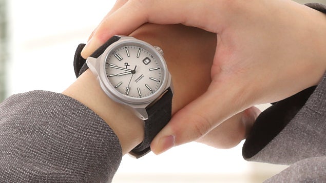 重さ97gとステンレススチール製の腕時計よりも約30%軽く、長時間つけていても快適です。