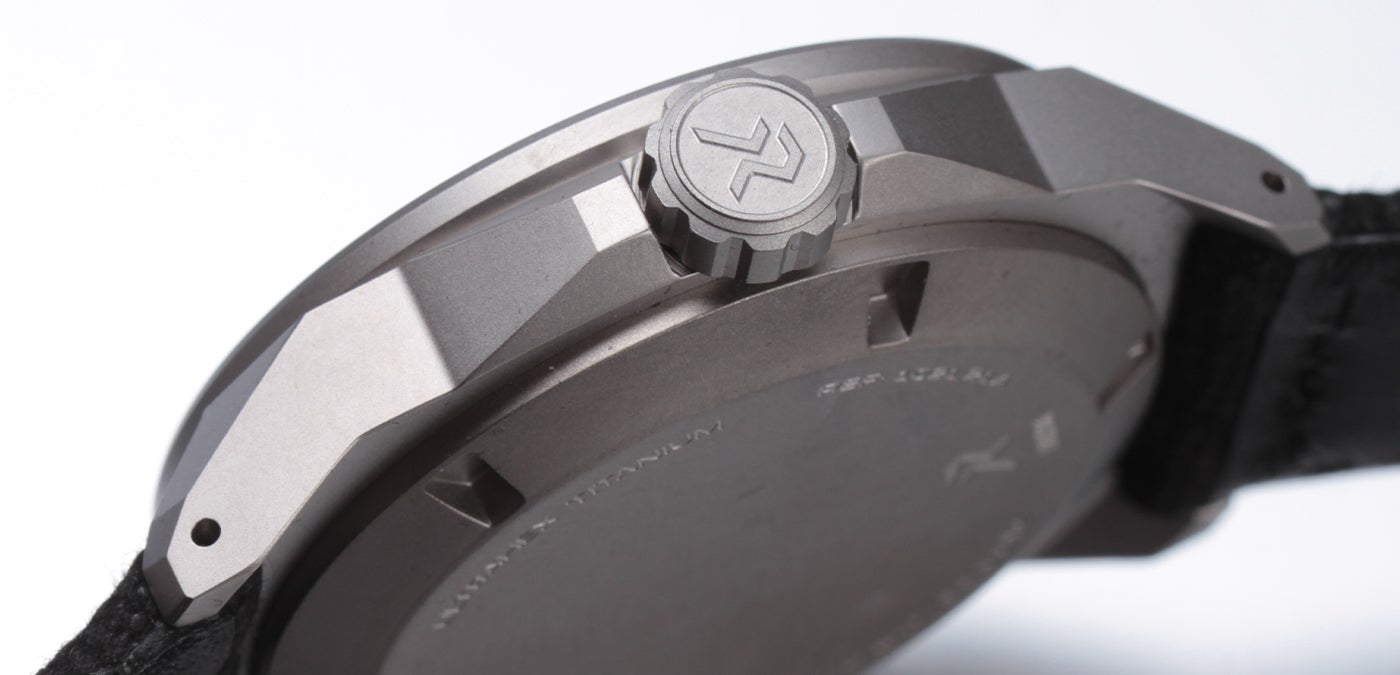 UltraHexコーティングを施したグレード2純チタンのフルチタンケースは316Lステンレススチールの8倍の硬度を誇ります。(最大硬度1200Hv)