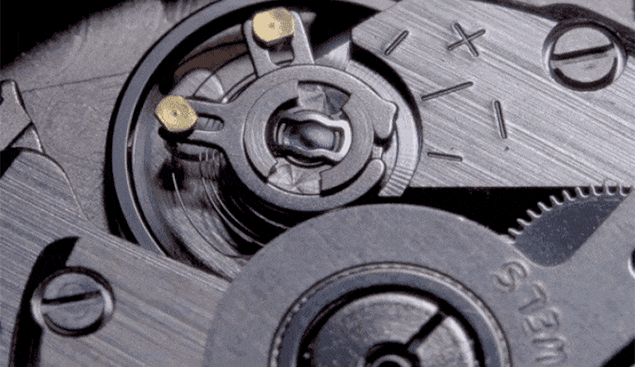 その後、リューズを1回だけ押し戻し、 リューズの糸が引っ掛かるのを感じるまでリューズに圧力をかけ続けます。時計回りにねじ込んで完了です。