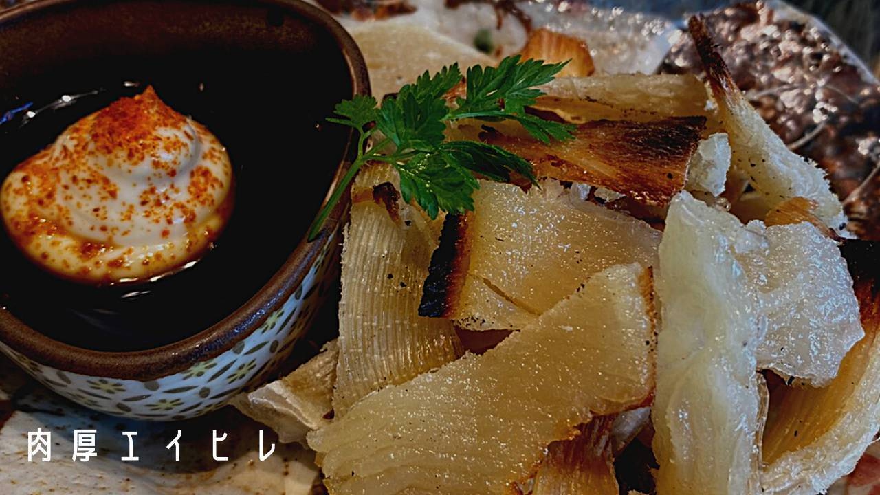 肉厚なエイヒレは炙ると香ばしく、一味醤油マヨネーズををつけて食べると、酒の肴にピッタリです!