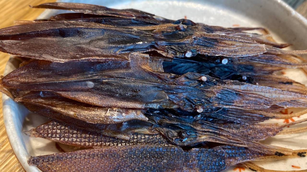 ホタルイカの素干しは、エイヒレ同様に炙ると何とも言えない香ばしい香りが店内に立ち込め、オーダーしたお客様以外のお客様からオーダーが連鎖していくほど、鼻腔をくすぐる香りが食欲をそそります!