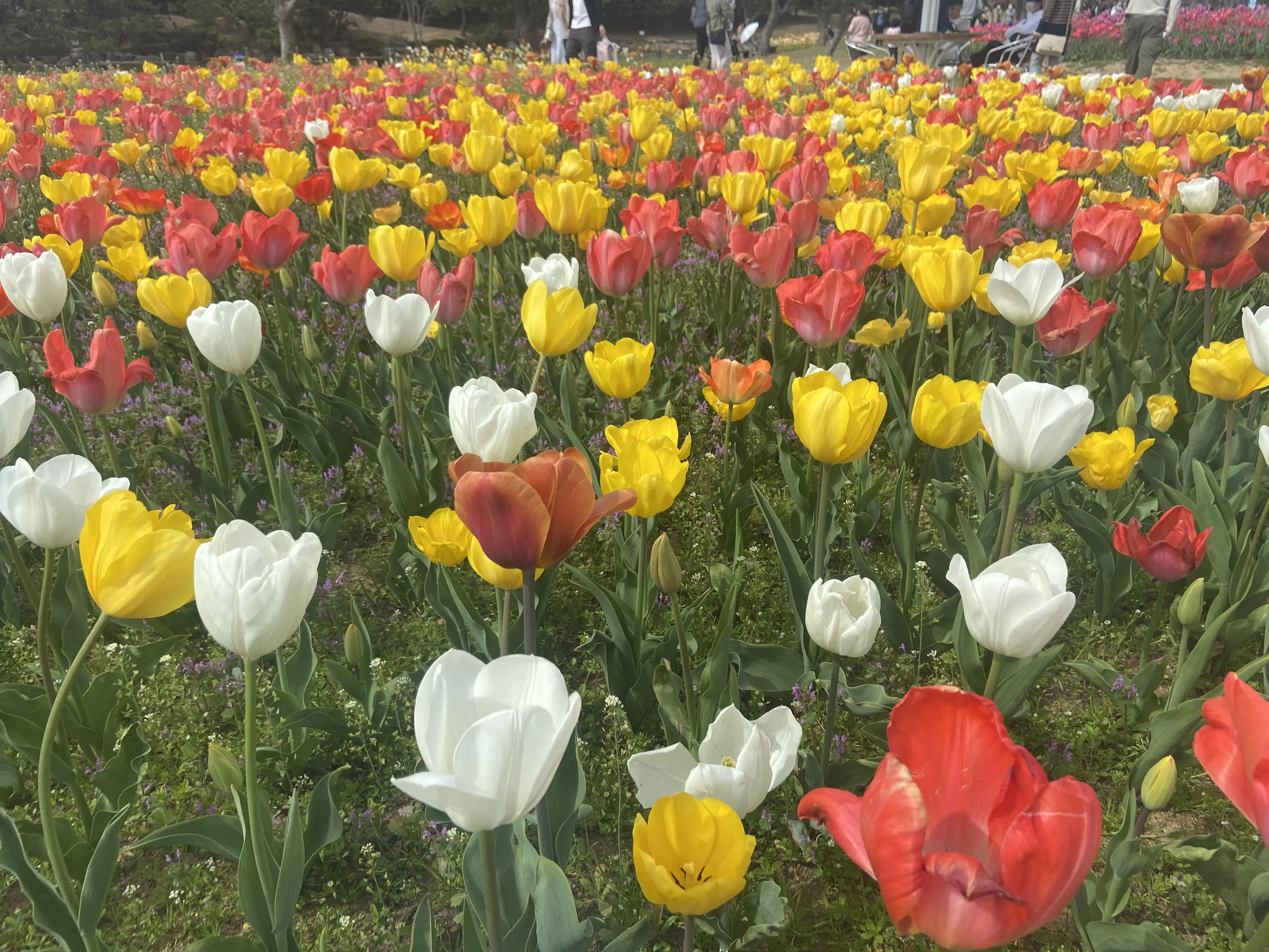 花と共に笑っている様子
