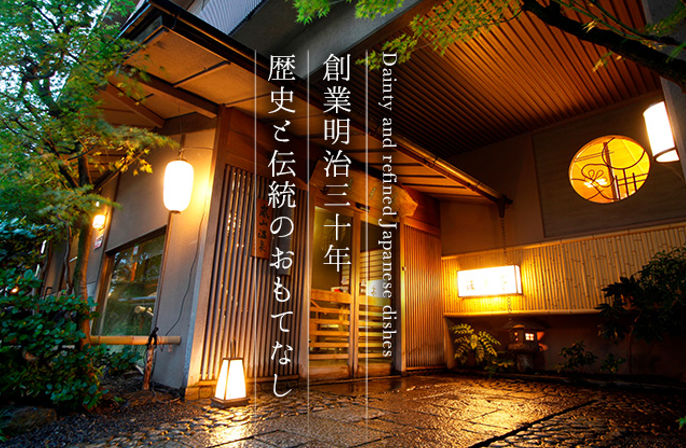 渡月亭は、明治30年に嵯峨釈迦堂清凉寺の門前にて初代金治郎が営業を開始致しました。時代の流れと共にお客様の流れが変わり、居を嵐山の代名詞でもある渡月橋のすぐそばに移し120余年。今は、4代目が京都の旅館文化を継承するという使命感のもと営業を続けております。京都のおもてなし・京料理と日本人の心の故郷である嵐山の景観を守りながら皆様のお越しをお待ちしております。