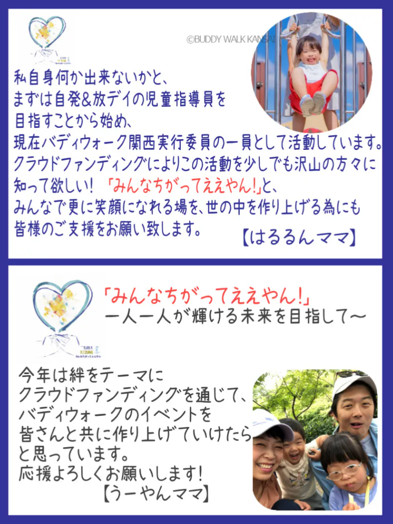 私たちみんなが「みんなちがってええやん」と認め合い尊重できる社会の実現のために、バディウォーク関西は力を尽くします。