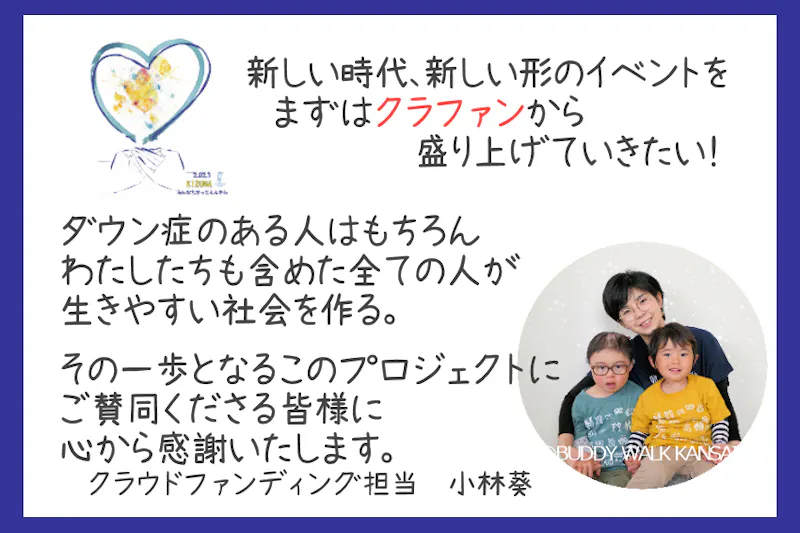 「バディウォーク関西inOSAKA2021に参加したらいろんな友だちが増えた!」と言ってもらえるような、今年のテーマである『絆』を感じられるイベントを作りたいと考えています。