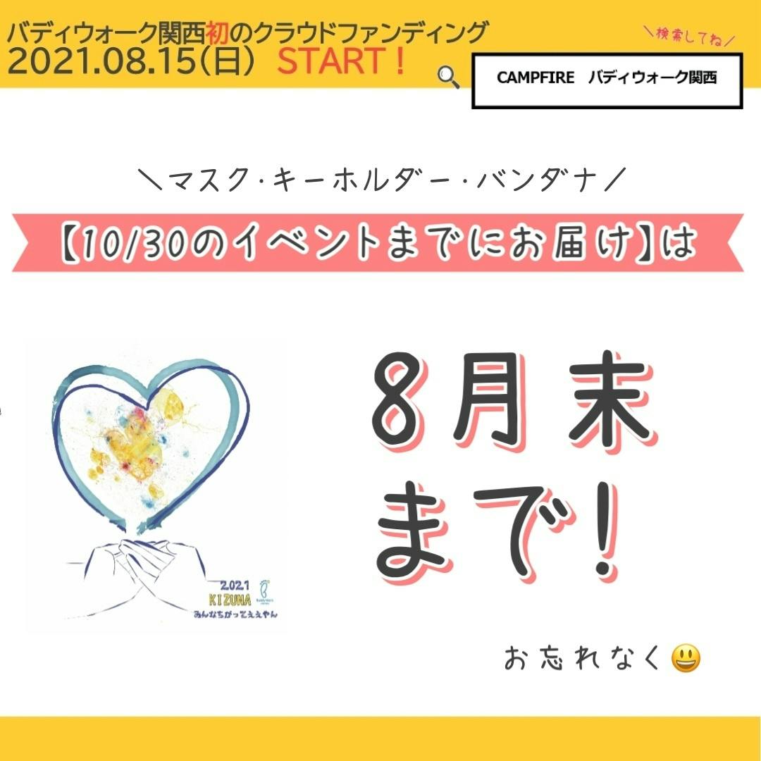 10/30(土)のイベント当日までにリターン(水筒を除く)をお届けできる期限は明日23:59までとさせていただいています。