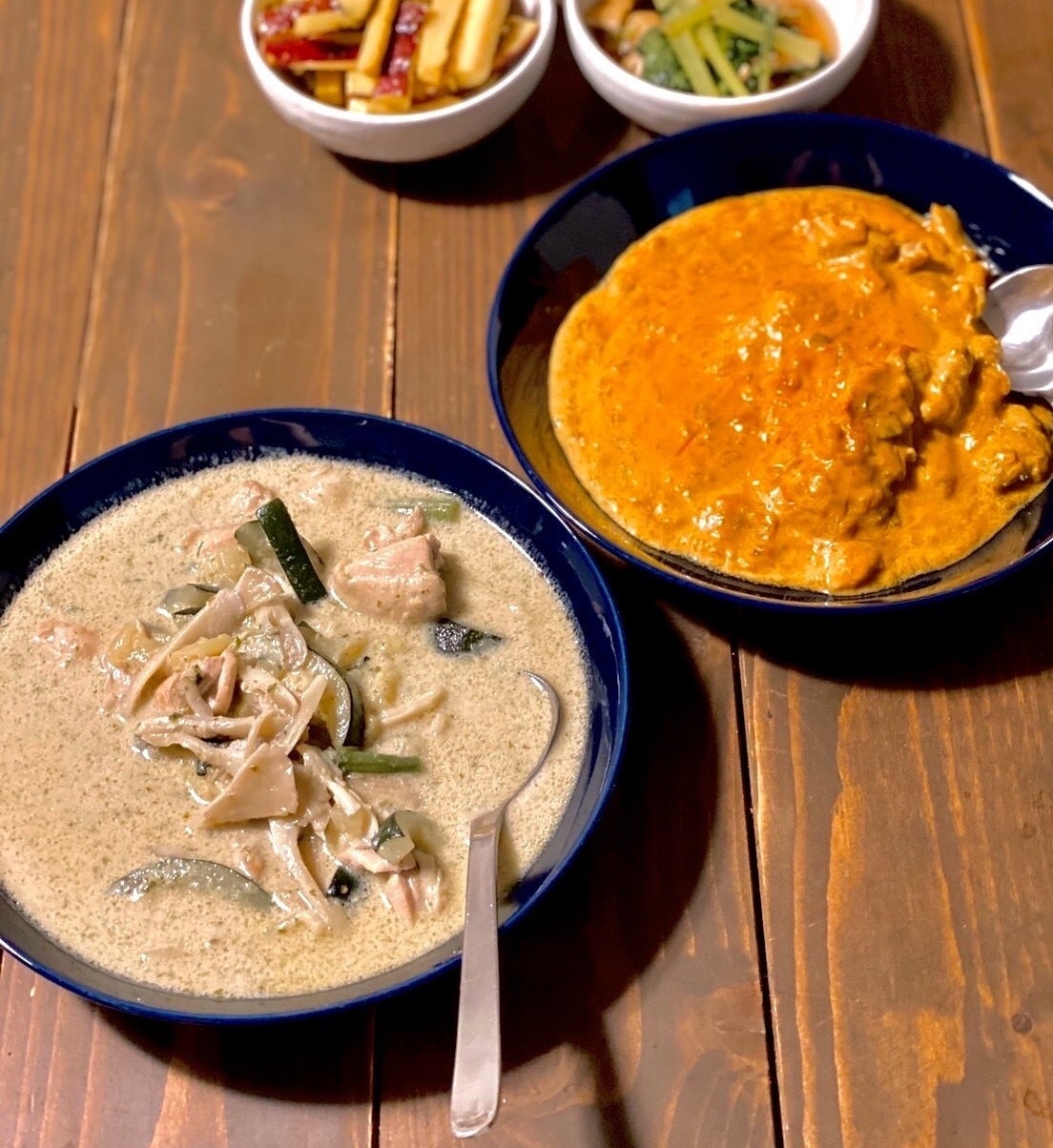 右:チキンとプサジュエラの基本のインド風スパイスカレー