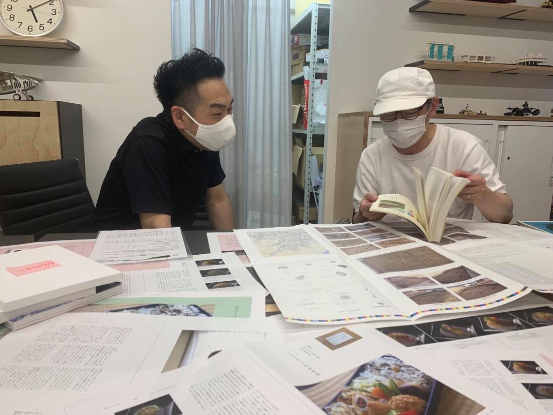 ちなみに、今回は「モノ」としていいものにしたいということも考えていて、一緒にベースから造っていけるところということで、藤原印刷さんにお願いすることにしました。(写真は館森則之さんと藤原印刷の藤原章次さんです)。