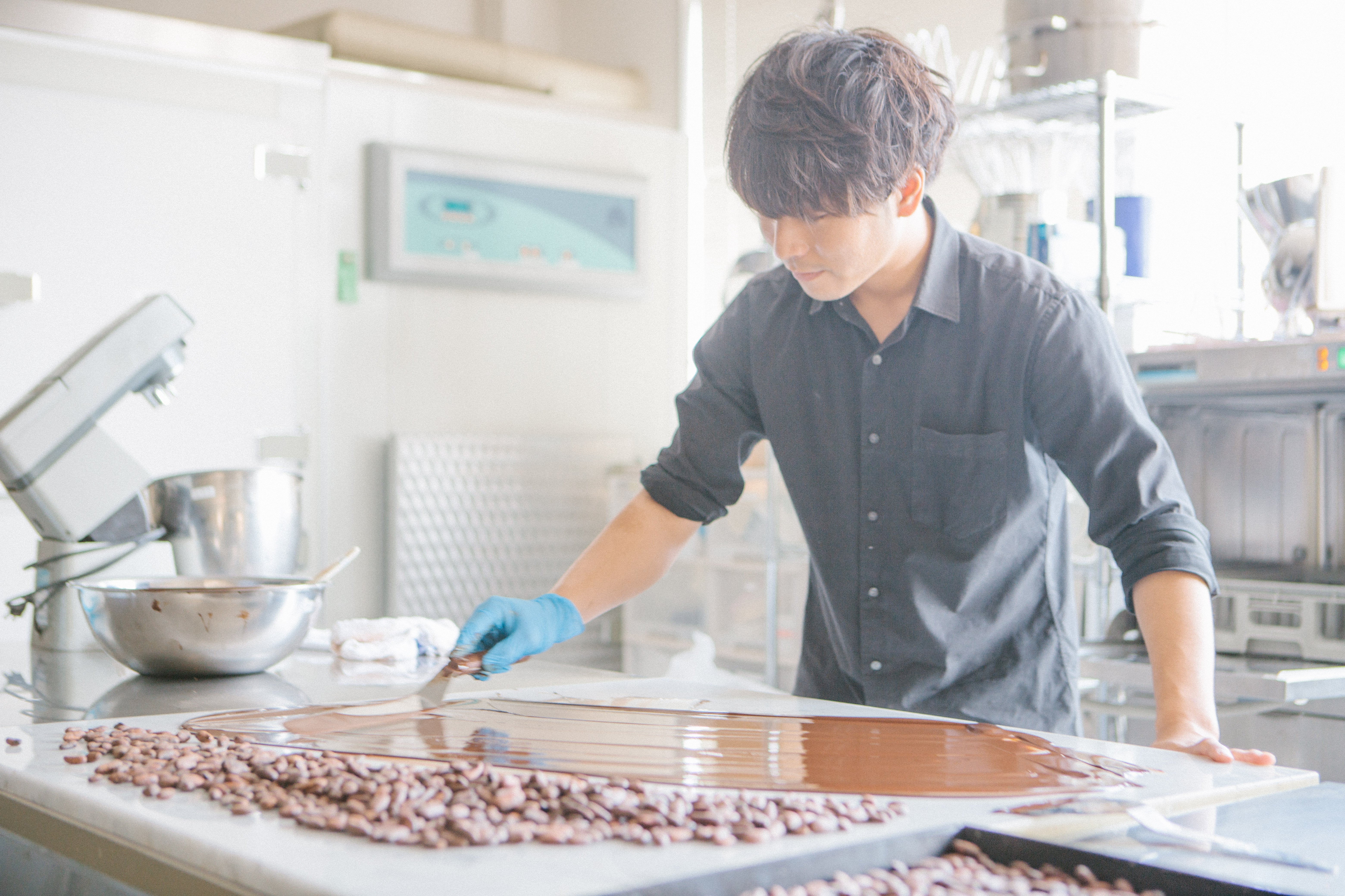 ショコラティエの八十川恭一です。突然ですが、私には野望があります。香川県をチョコレートでも有名な県にしたい。そのために、日常生活にチョコレートを取り入れられるような提案をしていきたいと考えています。紆余曲折を経て、僕はショコラティエになりました。製菓の専門学校を卒業後、洋菓子店に就職したあと、洋菓子店を数店経営する家族の会社に入るものの、方向性の違いで大喧嘩。お菓子づくりからは離れて、サラリーマンになりました。でもあるとき、父からチョコレートの商品開発を依頼されたんです。当時、僕のチョコレートに対する印象は「家庭でも簡単につくれるもの」としか思っていなかった。けれど、“bean to bar”という製法に出会い、自分の常識がくつがえされました。どのようなカカオの種類を選び、石臼でどのくらいのペースト状にするのか、ミルクをどのくらい入れるのかなど、一つ違えば味も香りも変わってくる。まるでワインのような奥深さがあることを知りました。人が感じる味覚によって、同じフレーバーのチョコレートを食べても時間が変われば違う味わいを堪能できます。作り方はもちろん食べ方も様々なチョコレート。今はチョコレートづくりが楽しくて、楽しくてしかたがありません。皆さん一人ひとりが好みのフレイバーと出会ったり、「チョコレートって面白い」と好奇心を育んだりできるような、より豊かな体験をここフィールズから作っていきたいです。
